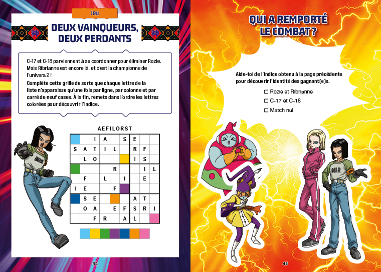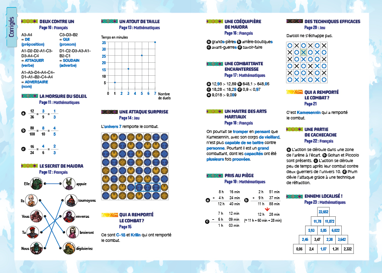 Les héros de l’univers 7 affrontent leurs adversaires. Récolte des indices au fil des exercices, pour découvrir les vainqueurs de chaque combat et bien sûr, le gagnant du grand tournoi.