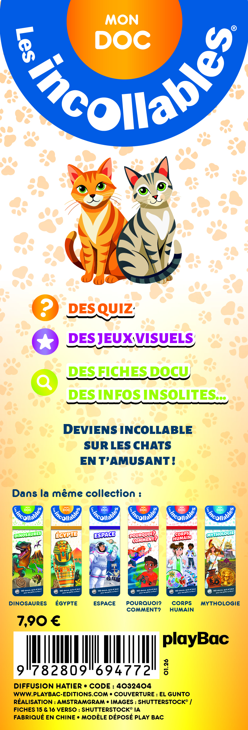 L'anatomie, les chatons, le langage, les différentes races… De quoi ravir tous les petits et grands curieux de ces adorables félins. Avec les Incollables, apprends en t'amusant !