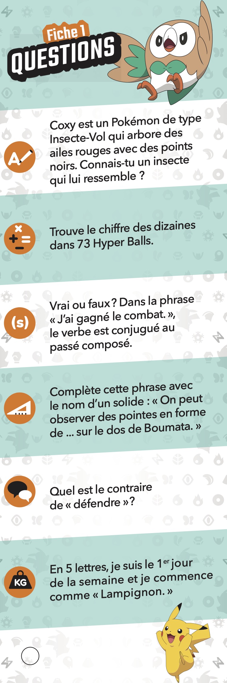 Prépare ta rentrée en CE2 avec cet éventail de questions-réponses dans l’univers des Pokémon.