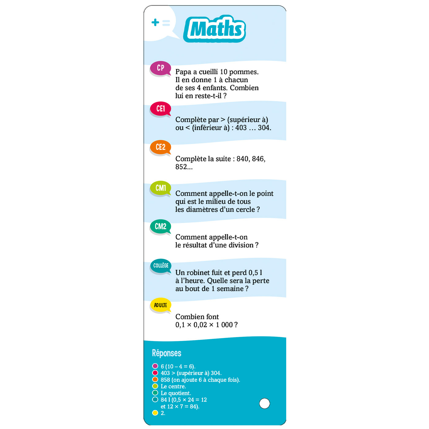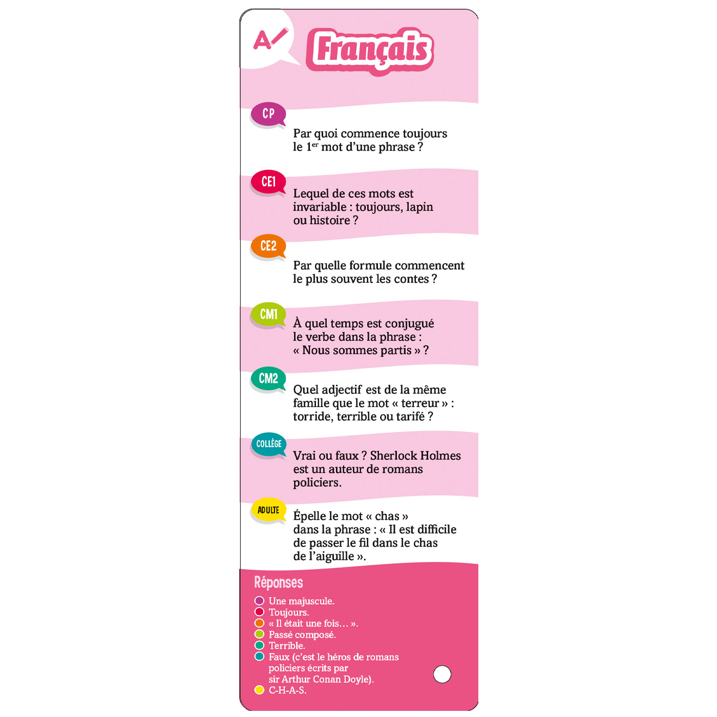 – 7 niveaux de difficulté : du CP au collège + un niveau adulte