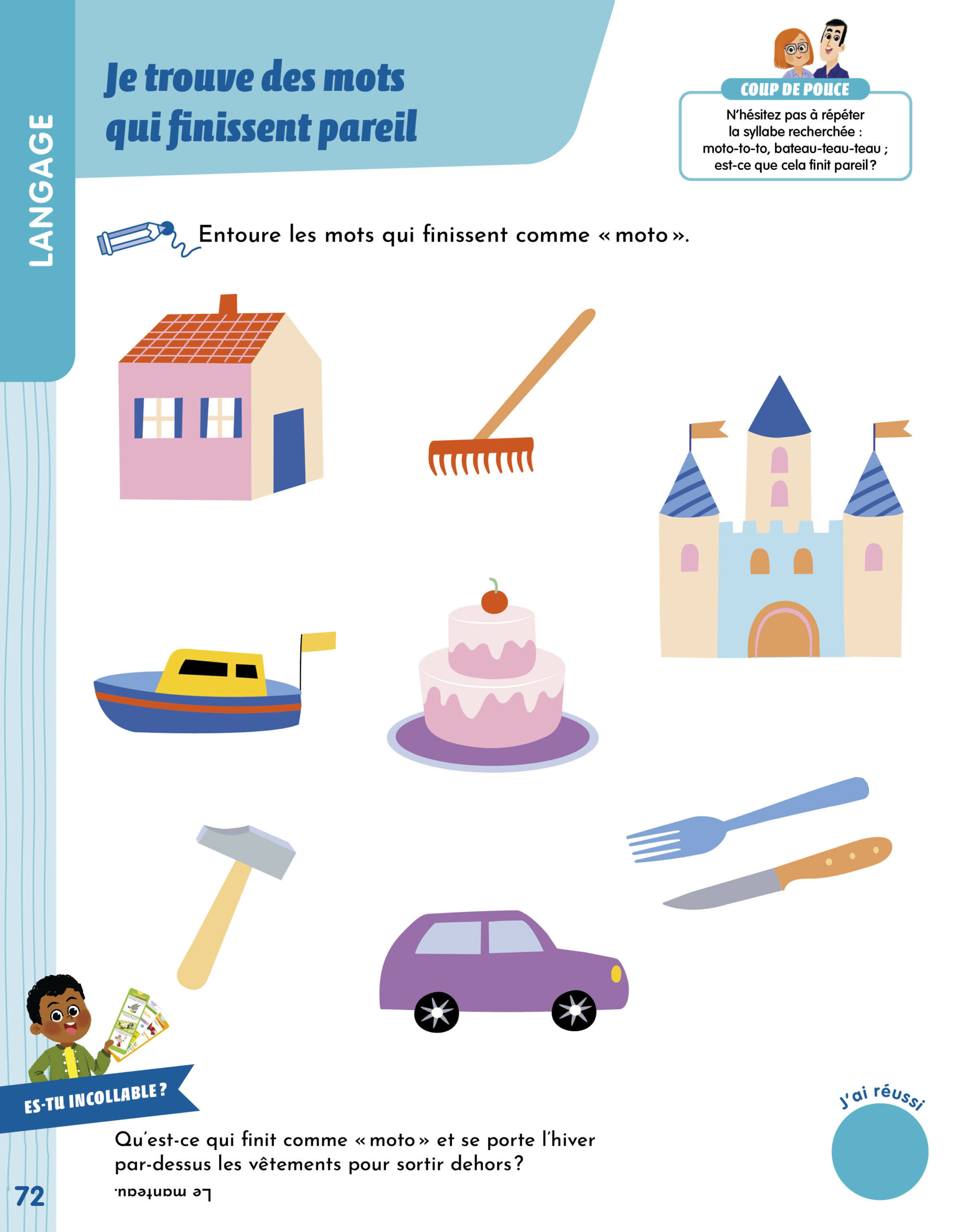 Votre enfant est encouragé grâce aux gommettes de réussite à coller à chaque activité réussie et des pages de bilan malin permettent de vérifier que les apprentissages ont bien été acquis.