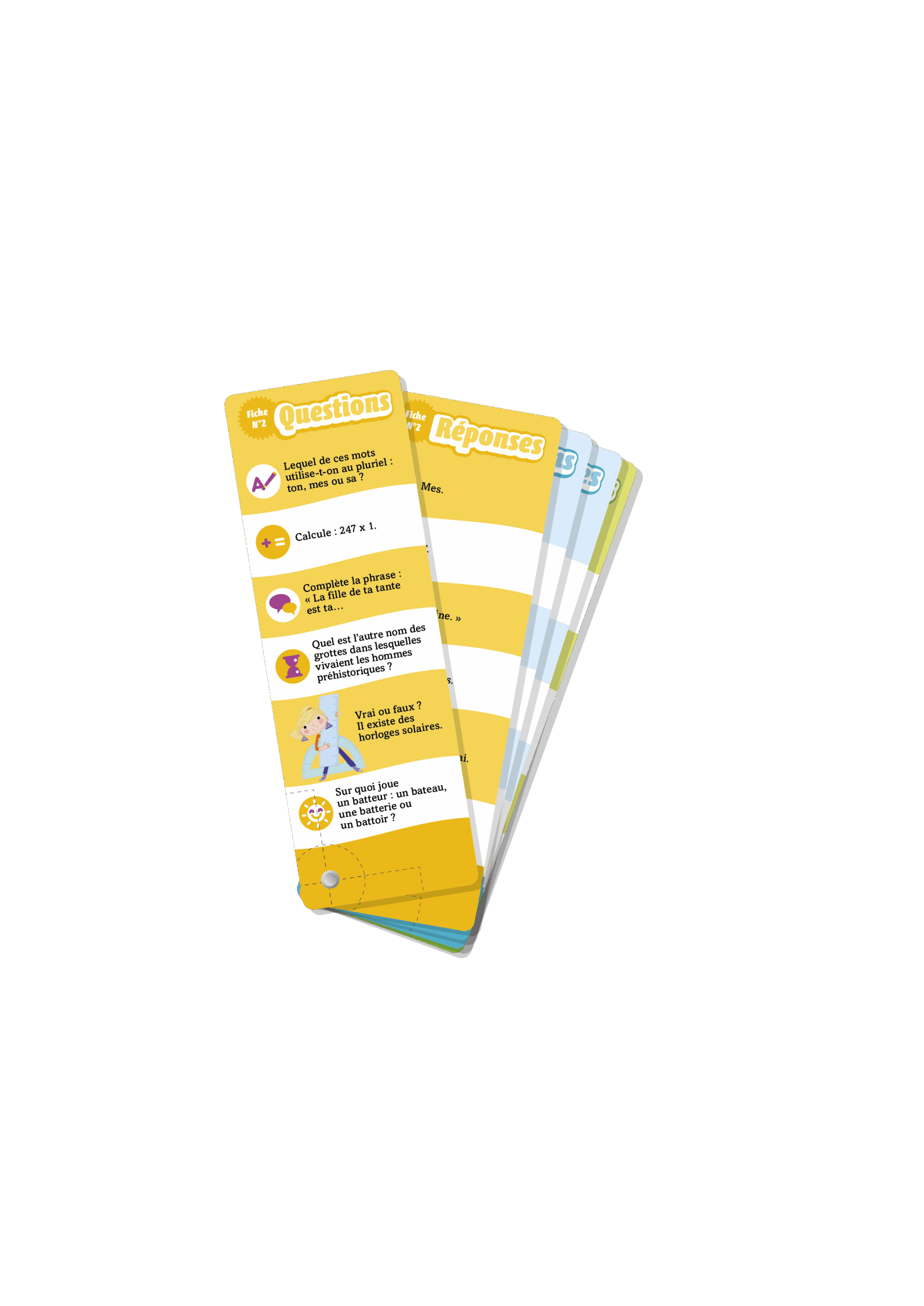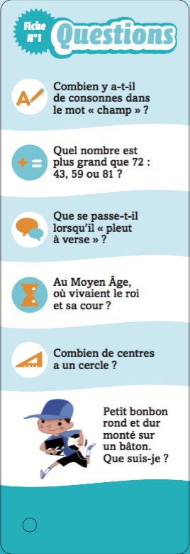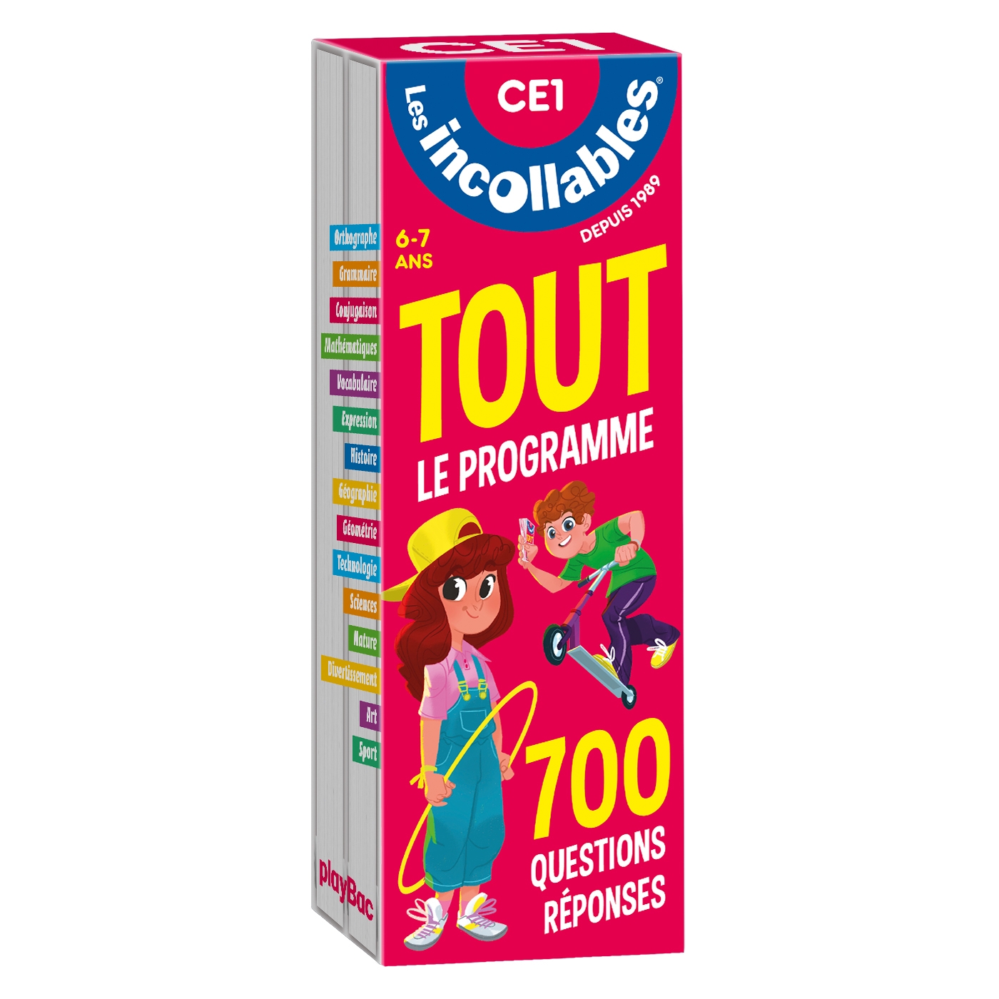 Depuis 1989, Les incollables accompagnent les enfants sur la route de l’apprentissage et du jeu. Les questions-réponses offrent un moment de jeu, de convivialité et de connaissance aussi. Eh oui, car selon nous, on n’apprend jamais mieux que quand on y prend du plaisir ! Dans ce titre : tout le programme de CE1 est synthétisé en 700 questions-réponses. En bonus : des pages rupture avec des quiz 100 % divertissement et des quiz pour coller ses parents ou découvrir qu’ils sont eux aussi incollables. 2 éventails à emporter partout pour apprendre en s’amusant. Toutes les matières sont traitées et les questions sont conformes au nouveau programme. Le tout dans une boîte pratique et super solide. Les incollables, un concept unique et innovant déjà adopté par plus de 50 millions d’enfants.