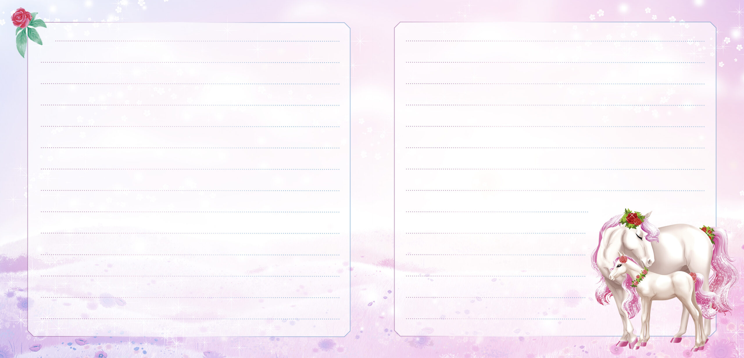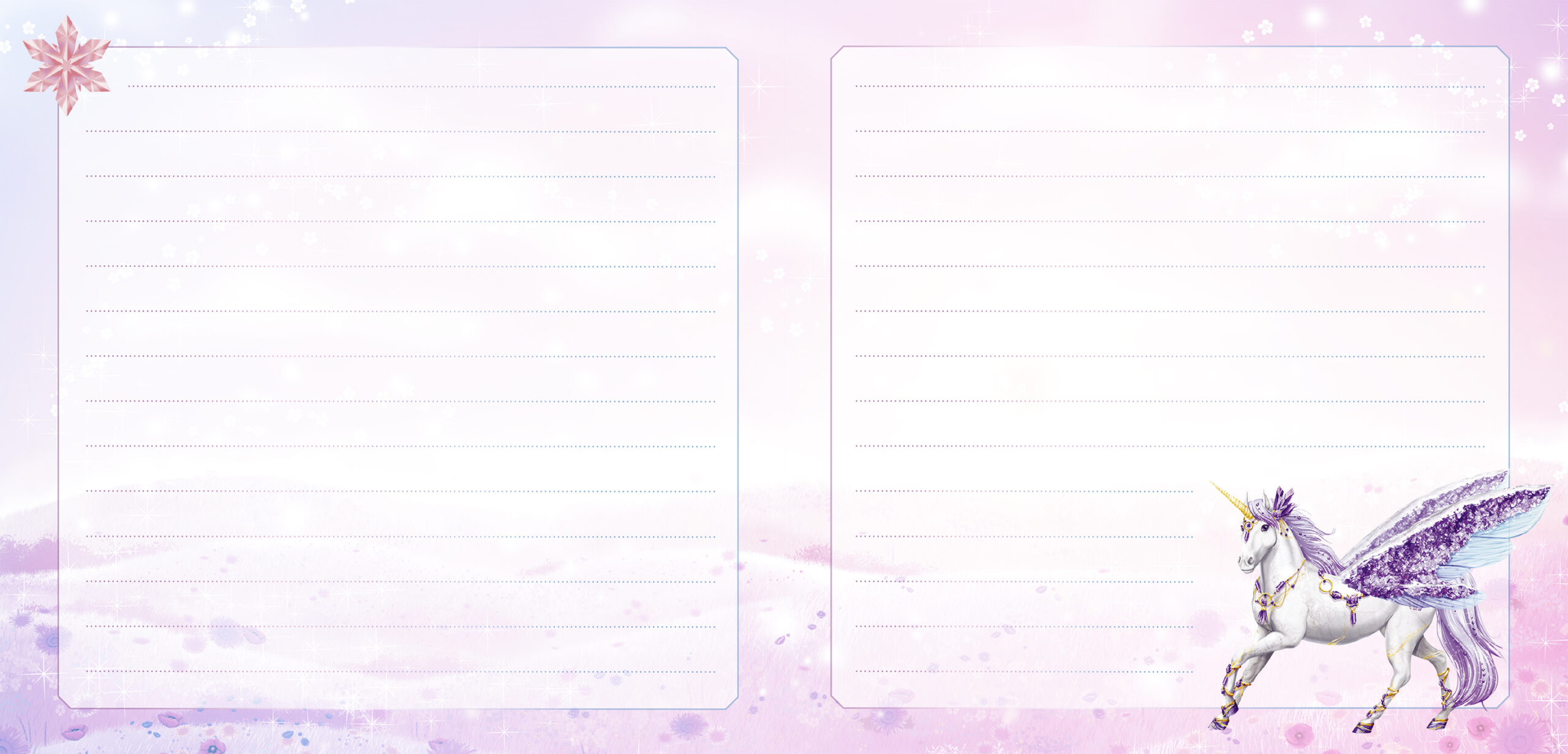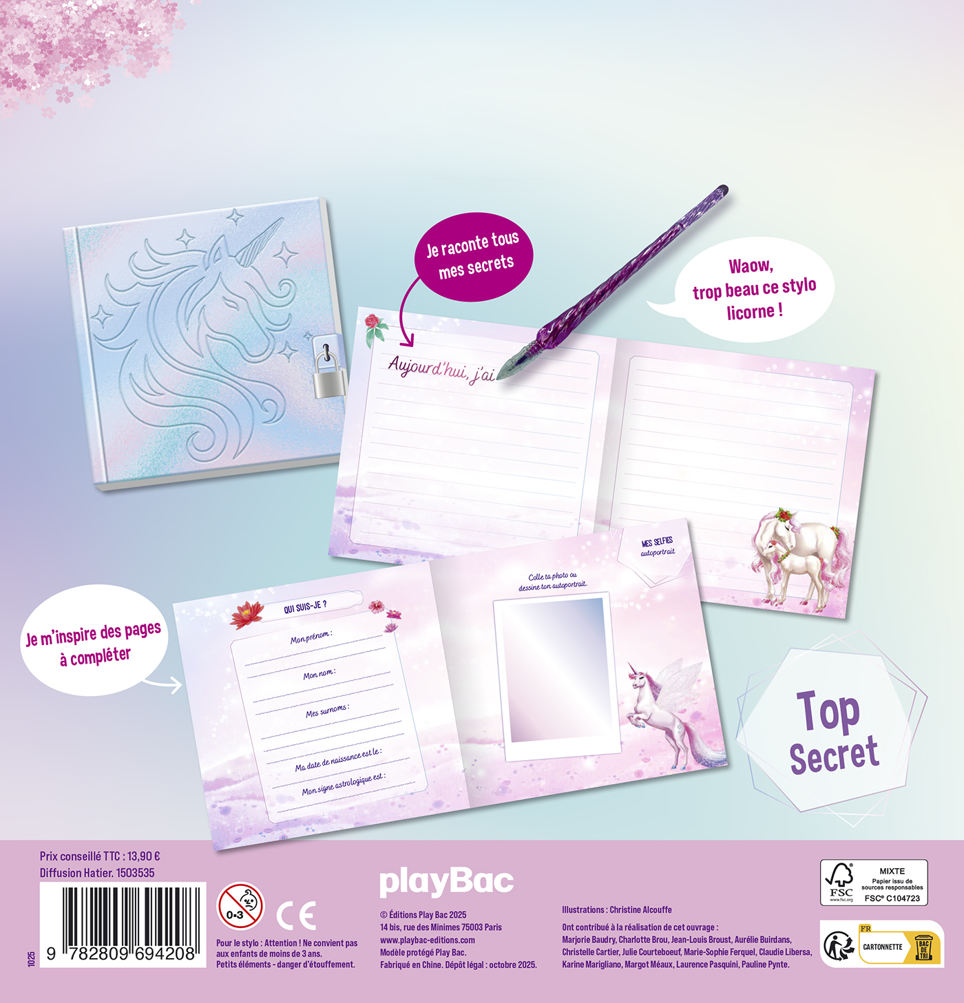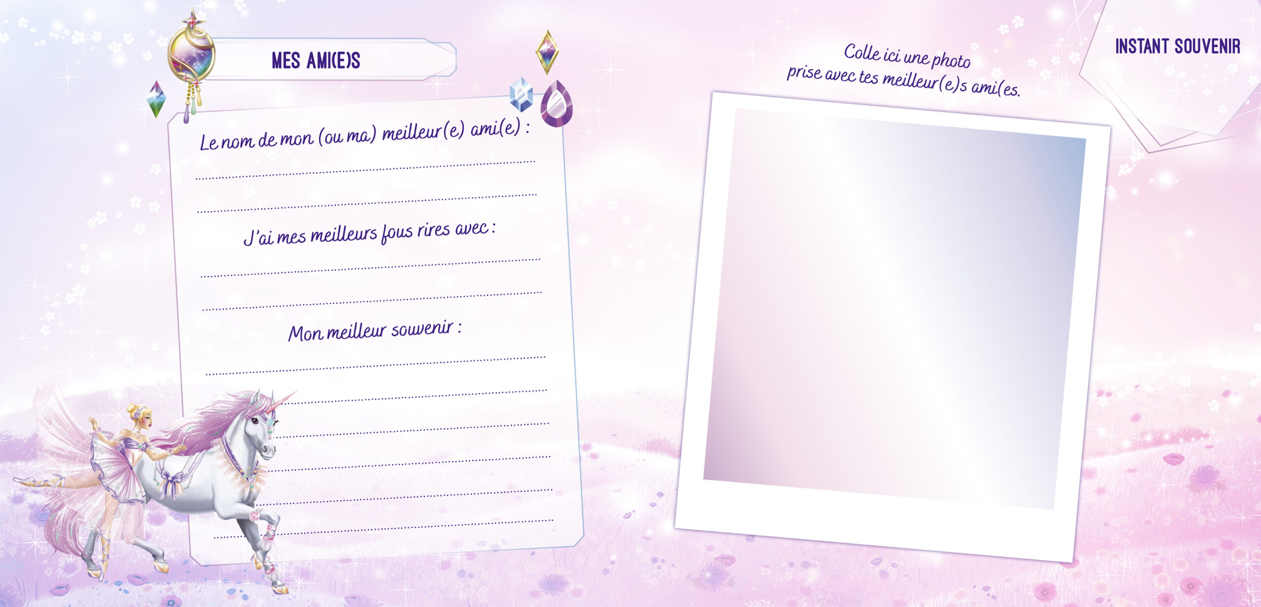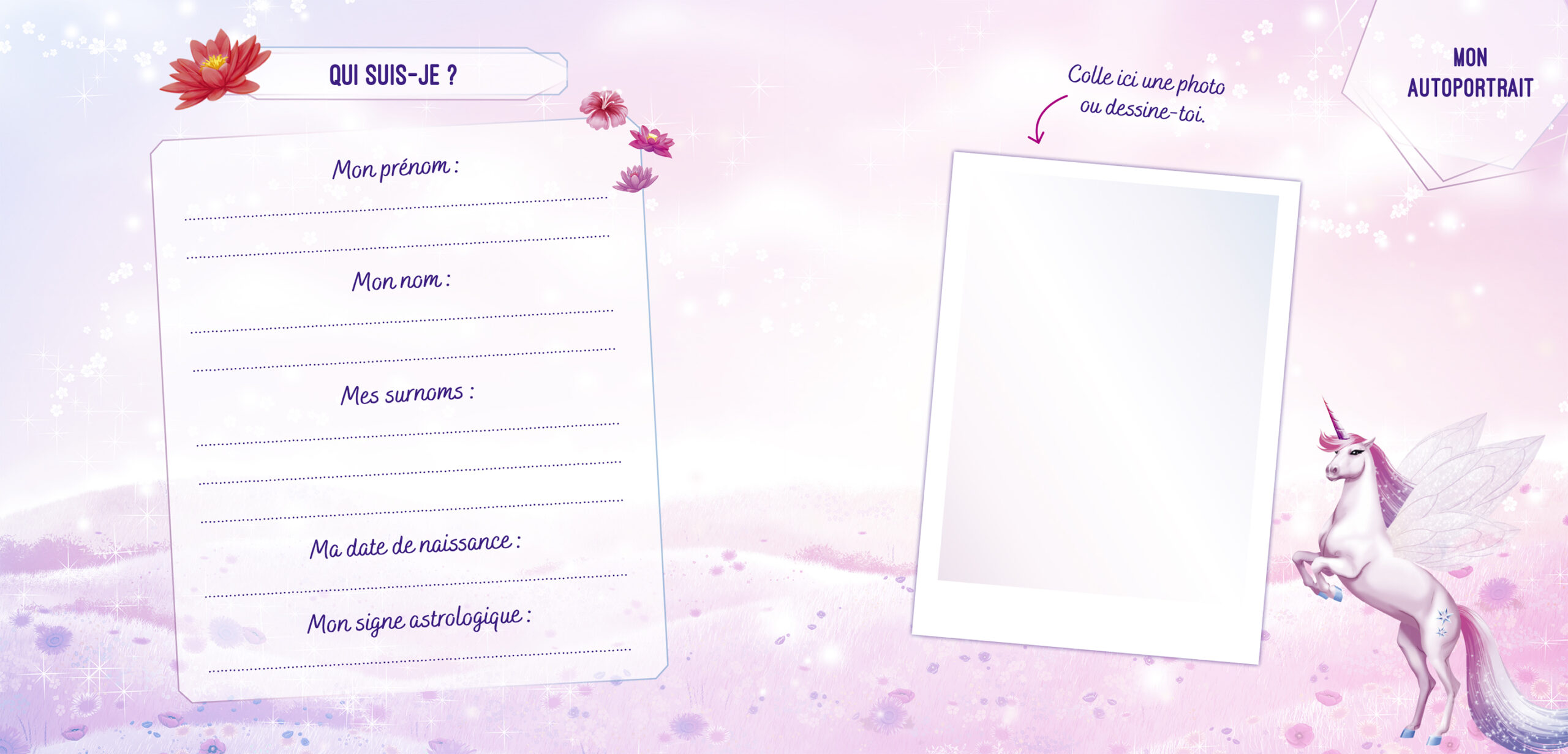 - Un journal secret avec une couverture holographique scintillante, décorée d’une magnifique licorne féerique.