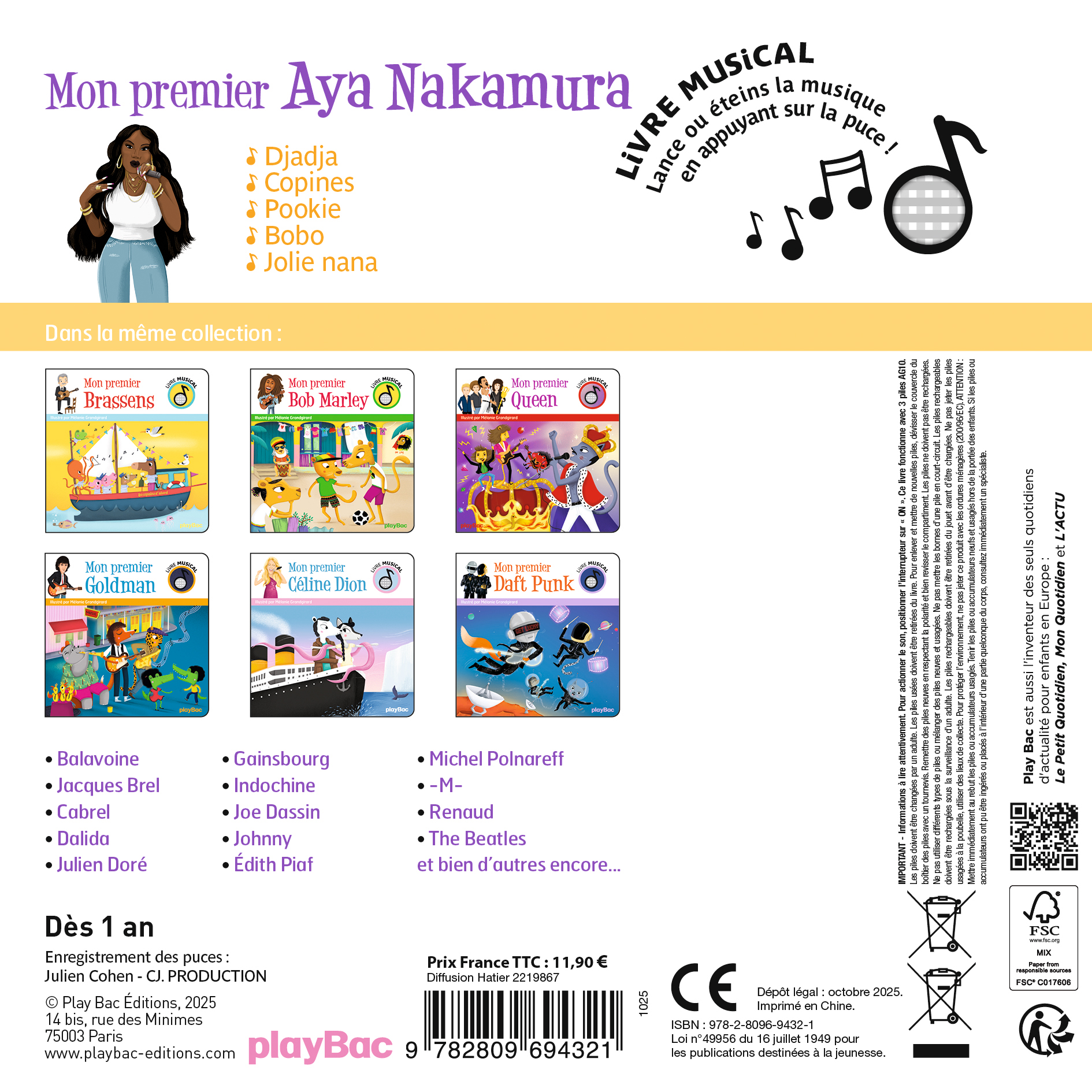 Fan de l'incontournable Aya Nakamura et de sa musique urbaine et rythmée ? Avec ce livre sonore, faites découvrir ses plus grands titres à votre enfant :