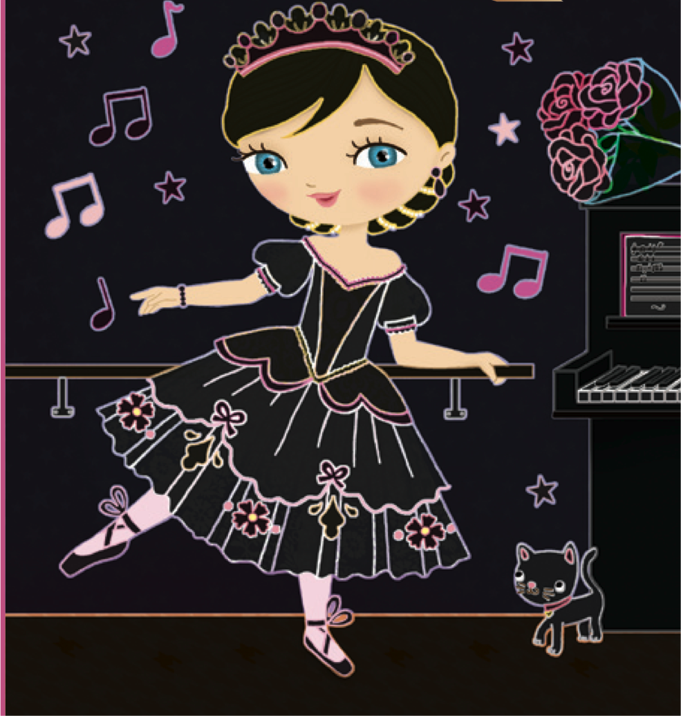 Gratte et dévoile les zones scintillantes pour découvrir de jolies danseuses à l’Opéra !   Cette pochette contient : – 5 cartes à gratter brillantes ; – 5 coloriages ; – 1 pique en bois pour gratter finement ou plus largement.
