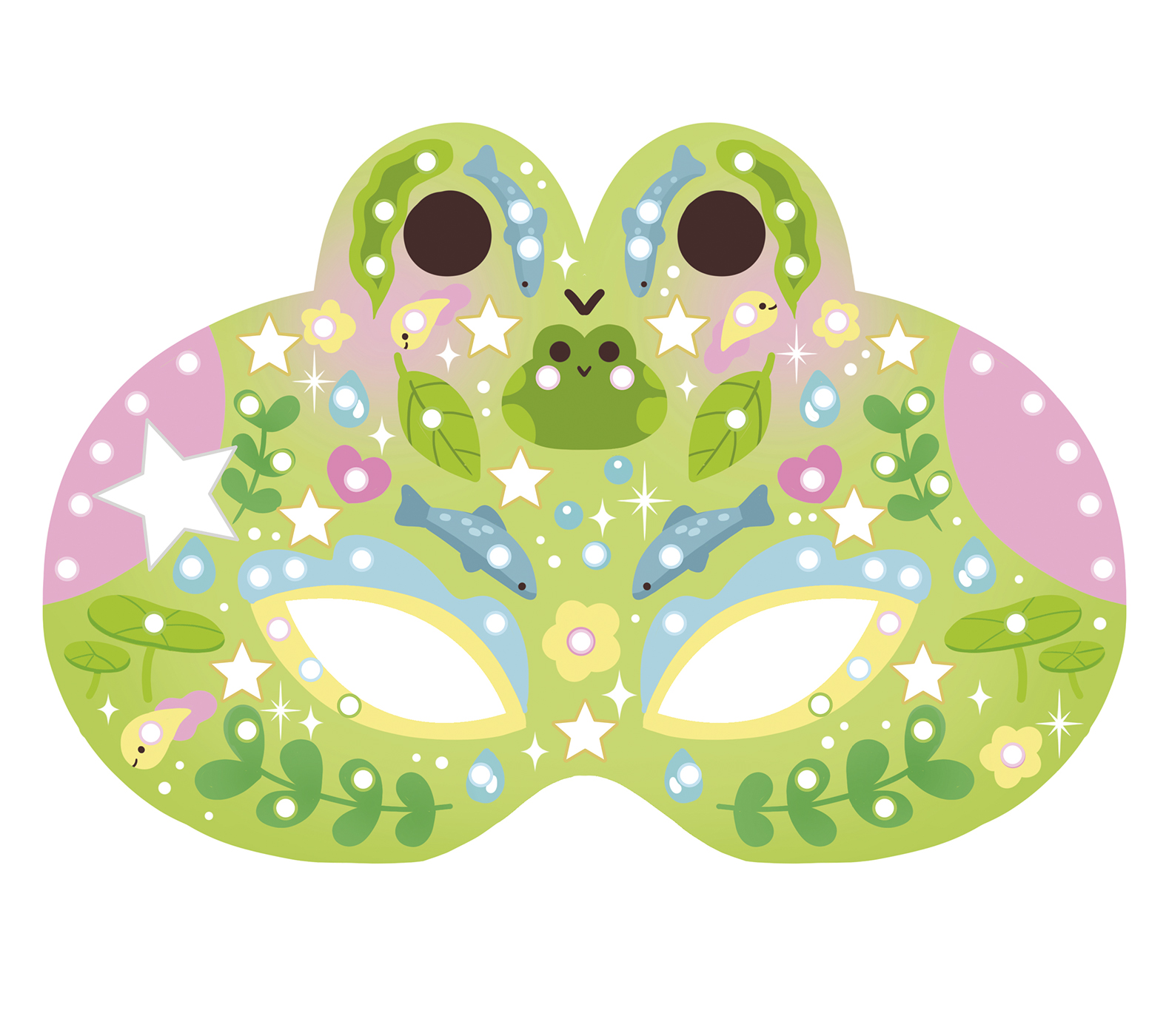 Colle tes strass brillants pour personnaliser tes masques puis retourne-les et colorie-les !