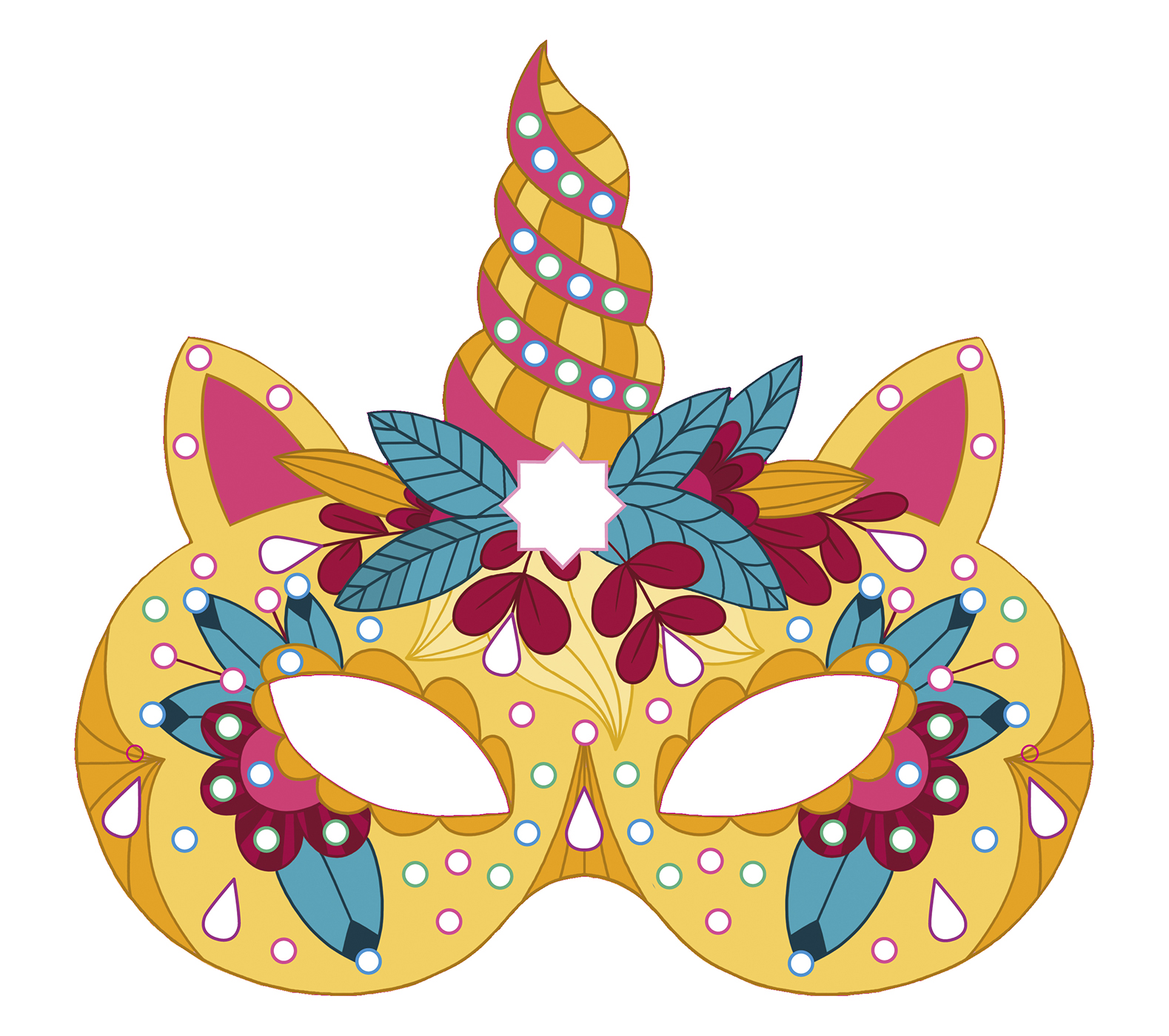 Colle tes strass brillants pour personnaliser tes masques puis retourne-les et colorie-les !