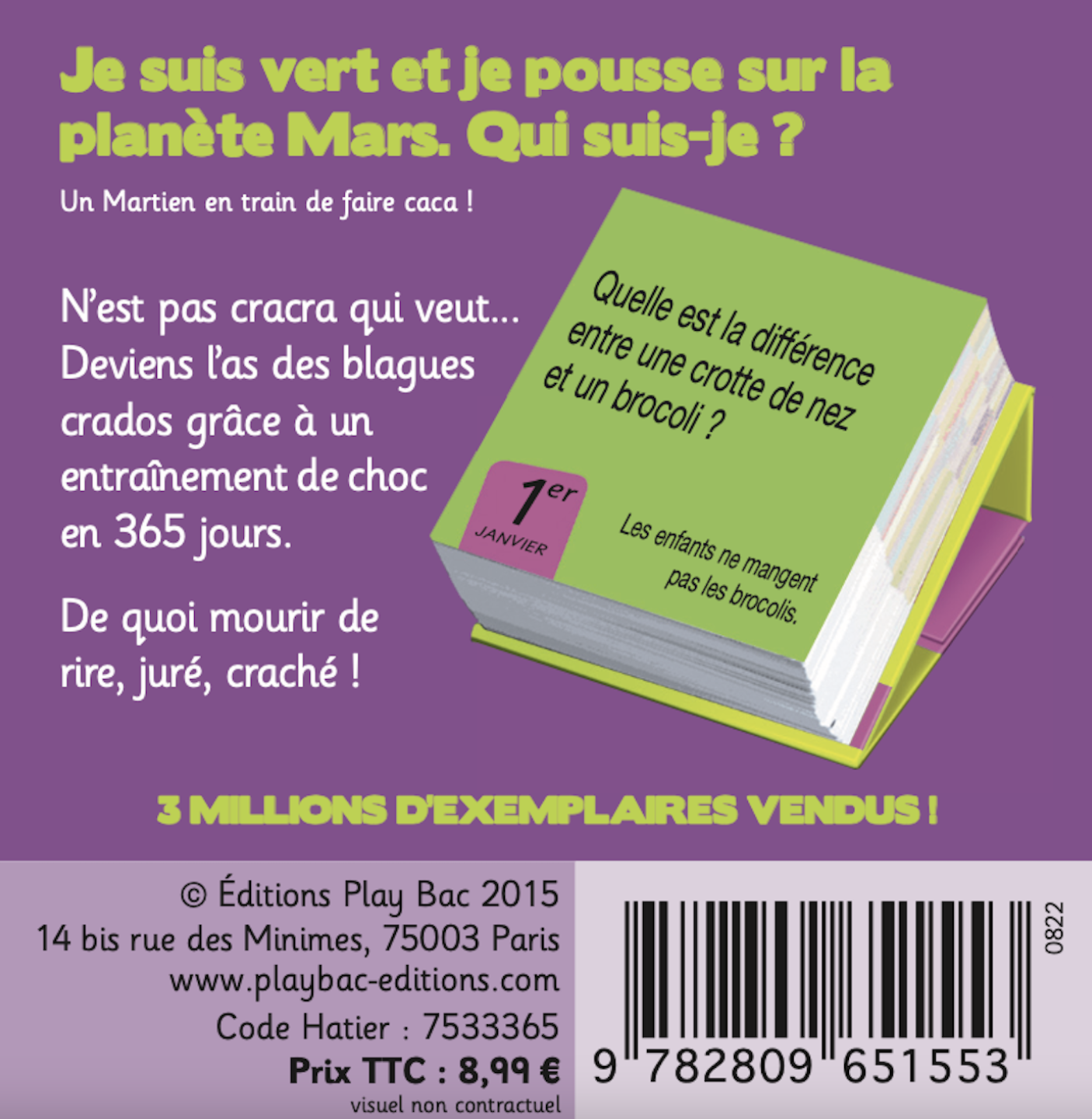 Pour trouver une librairie où acheter Mini calendrier – 365 blagues crados, on vous invite à visiter le site Place des libraires !