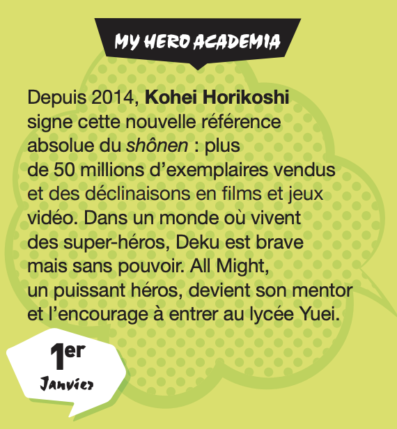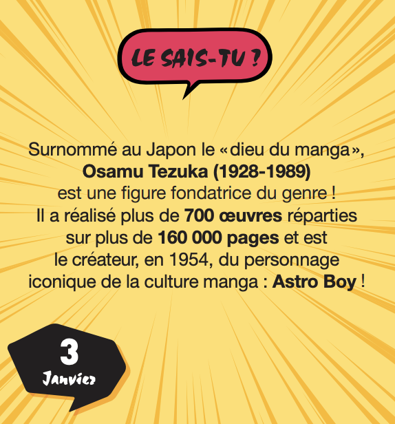 Fans d’un héros en particulier, d’une série précise ou d’anime en général, ce calendrier aux contenus inédits et transversaux saura contenter les amateurs de mangas en tout genre !