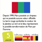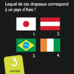 Les enfants les adorent. Tous les drapeaux des pays du monde (et quelques autres : drapeaux de pirate, drapeaux de signalisation…) en 365 jours de quiz. Le mini calendrier pour tester ses connaissances tout au long de l'année.