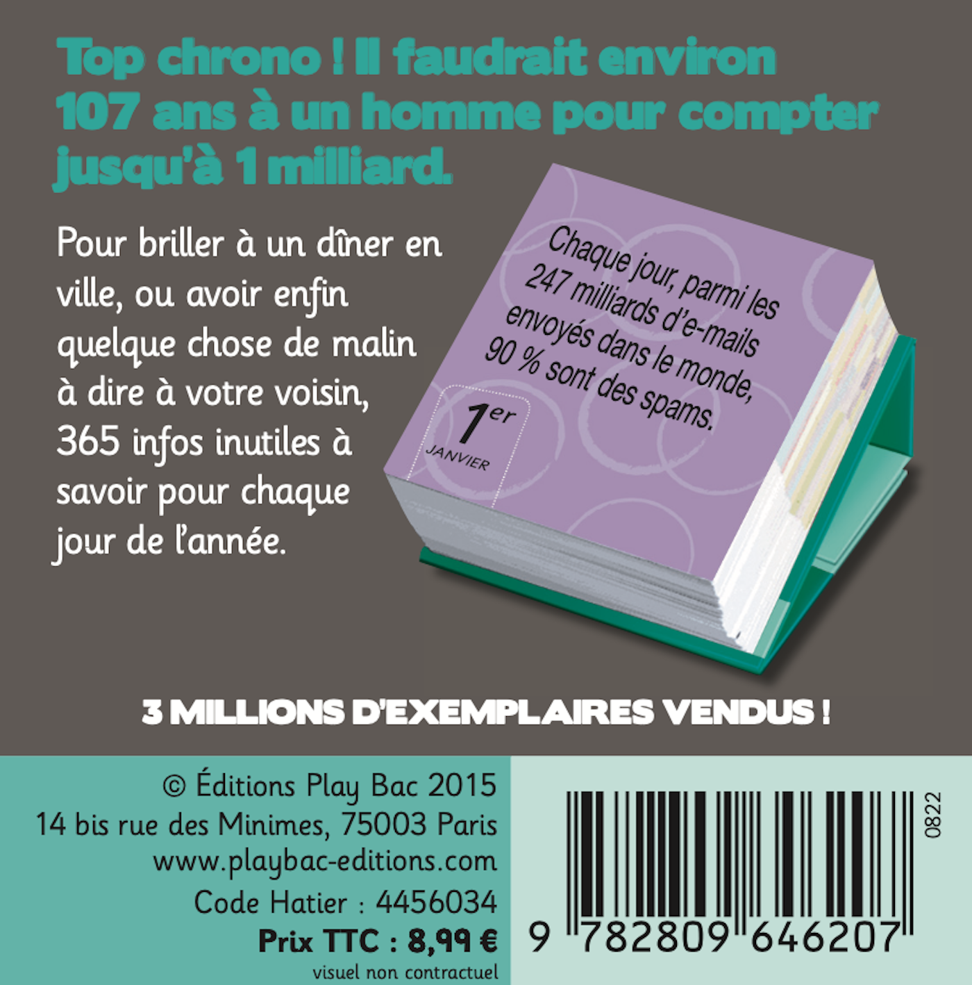 365 infos inutiles à savoir pour chaque jour de l’année. Le mini calendrier de 365 infos inutiles à savoir pour alimenter vos conversations.