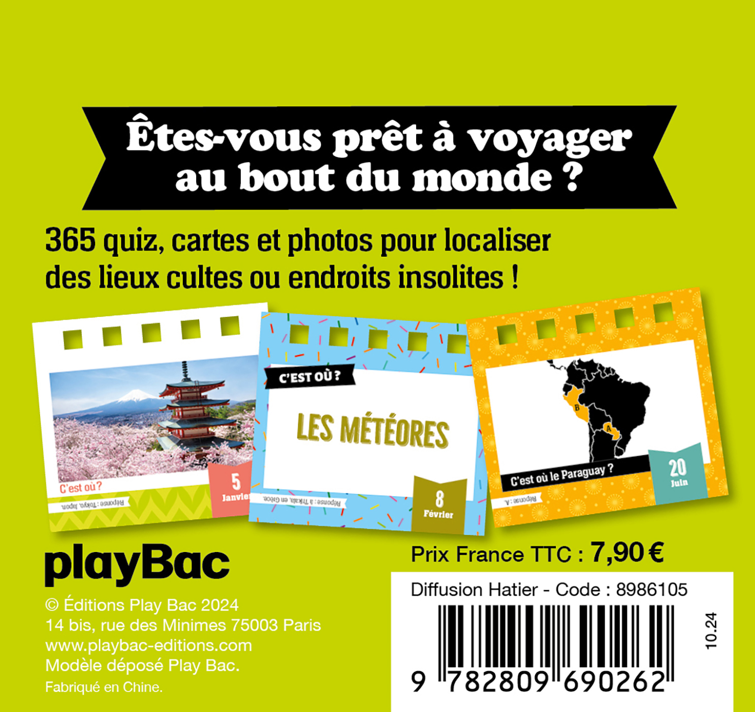 365 quiz, cartes et photos pour localiser des lieux cultes ou endroits insolites, dans un adorable petit format chevalet à poser partout.