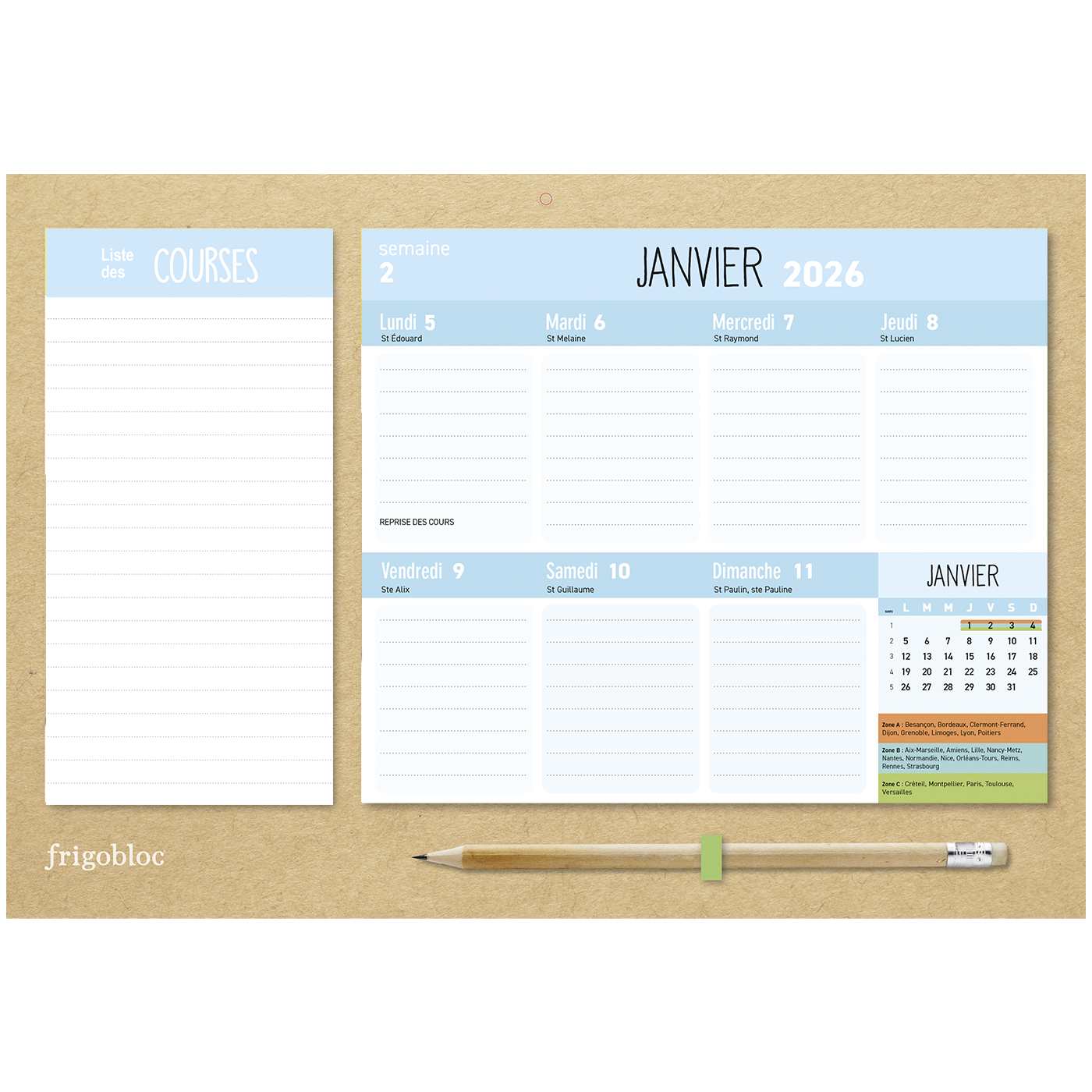 Mini Frigobloc Hebdomadaire 2026 Anti-Gaspi (de sept. 2025 à déc. 2026)