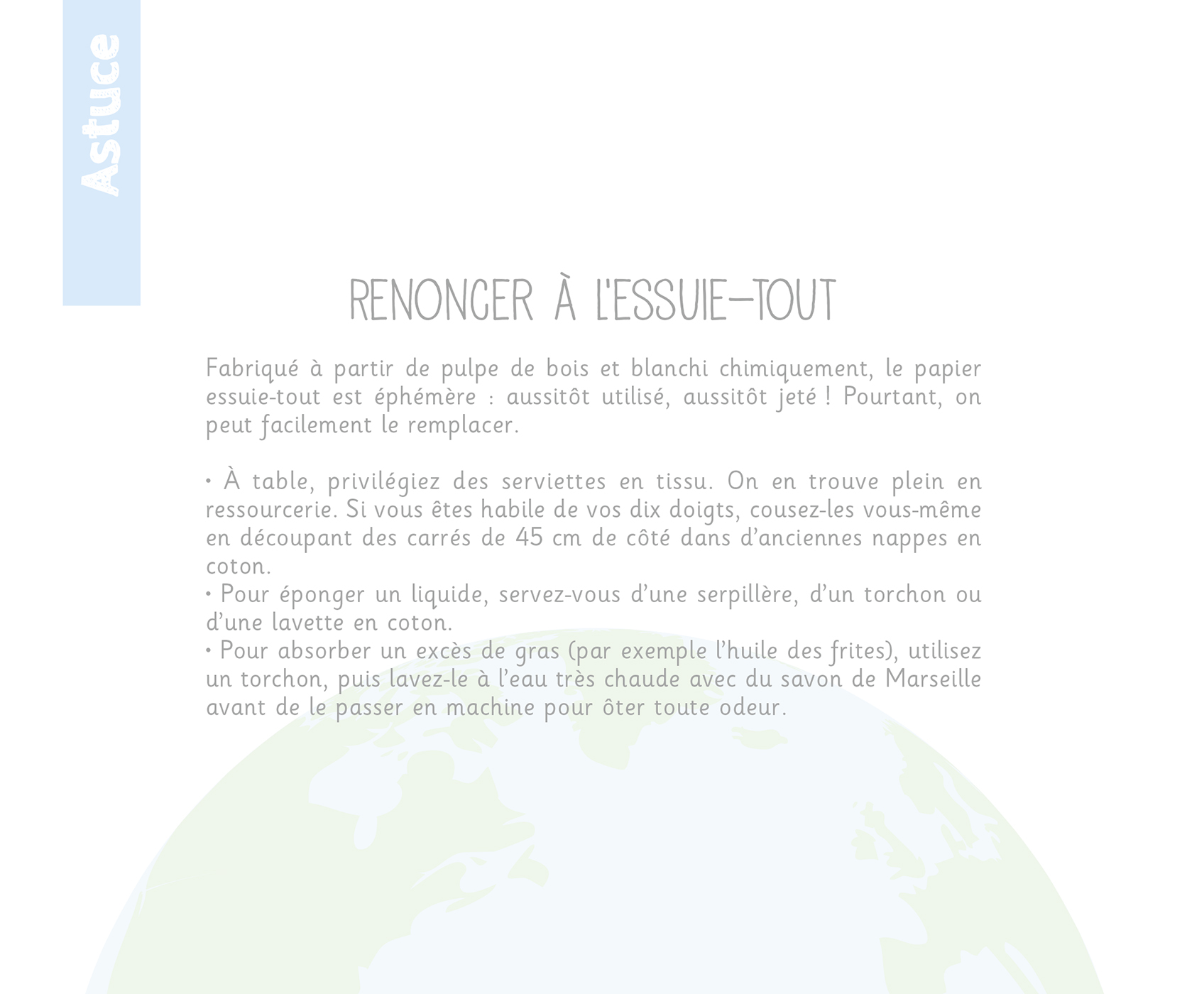 – Des conseils, des infos et des astuces anti-gaspi : acheter en vrac, recoudre un vêtement abîmé, fabriquer sa lessive… autant de petits gestes qui peuvent amener à de grands changements !