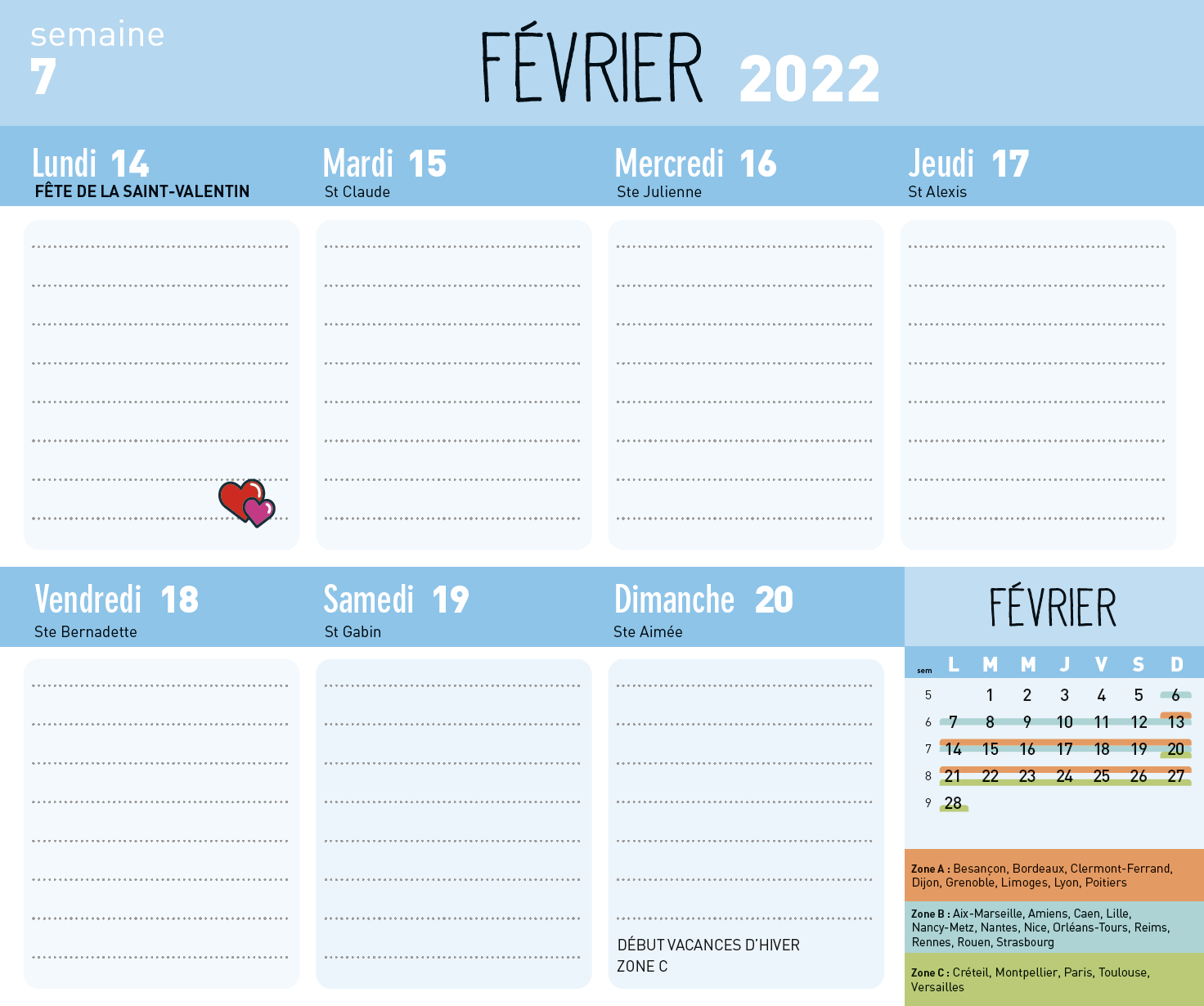 Maxi compact, maxi aimanté mais surtout maxi pratique, ce calendrier d'organisation familiale propose 1 page d'organisation par semaine, 1 bloc de liste de courses, 1 criterium et surtout des recettes rapides pour vos repas du soir !