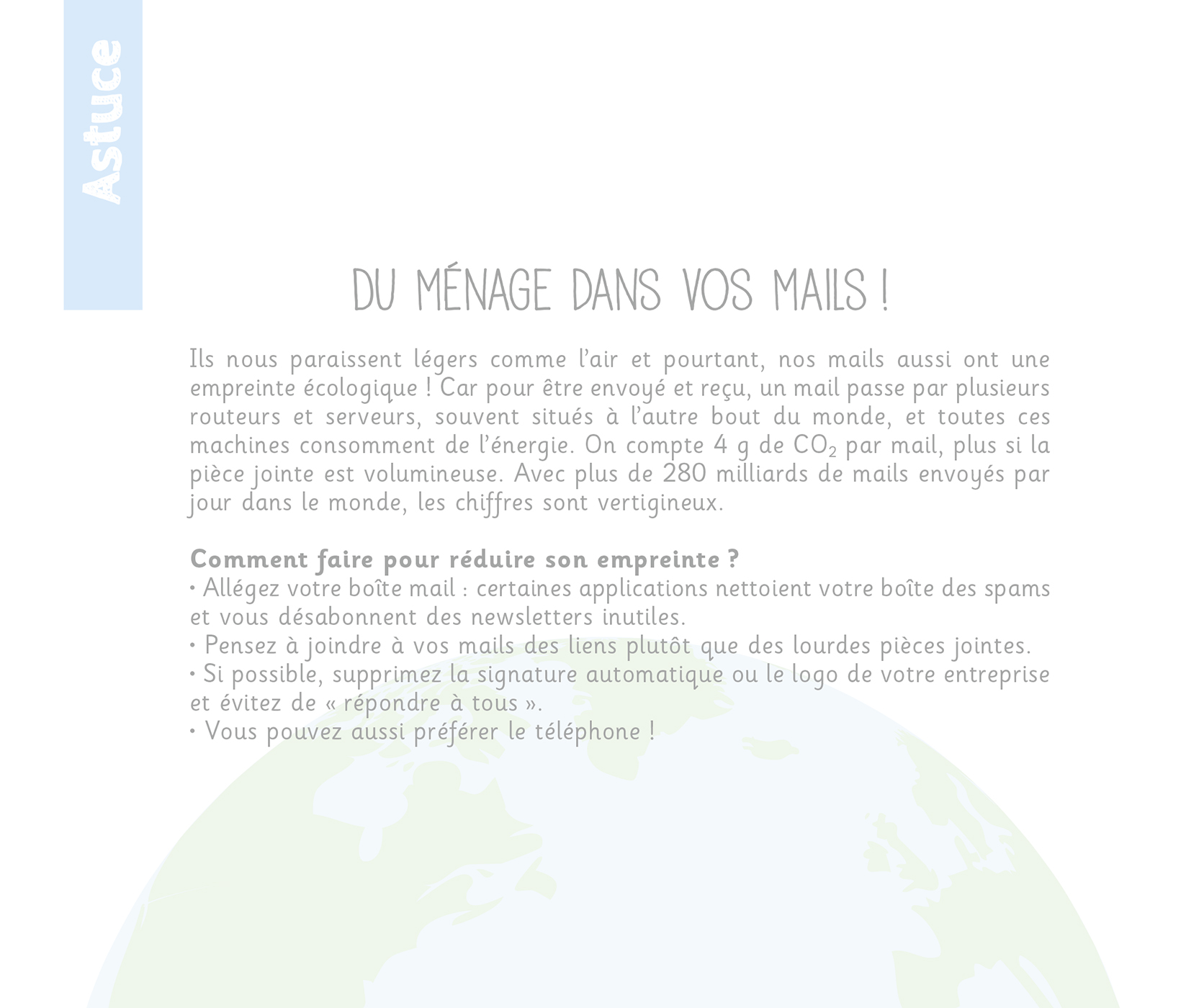 – Des conseils, des infos et des astuces zéro déchet : acheter en vrac, recoudre un vêtement abîmé, fabriquer sa lessive… autant de petits gestes qui peuvent amener à de grands changements !