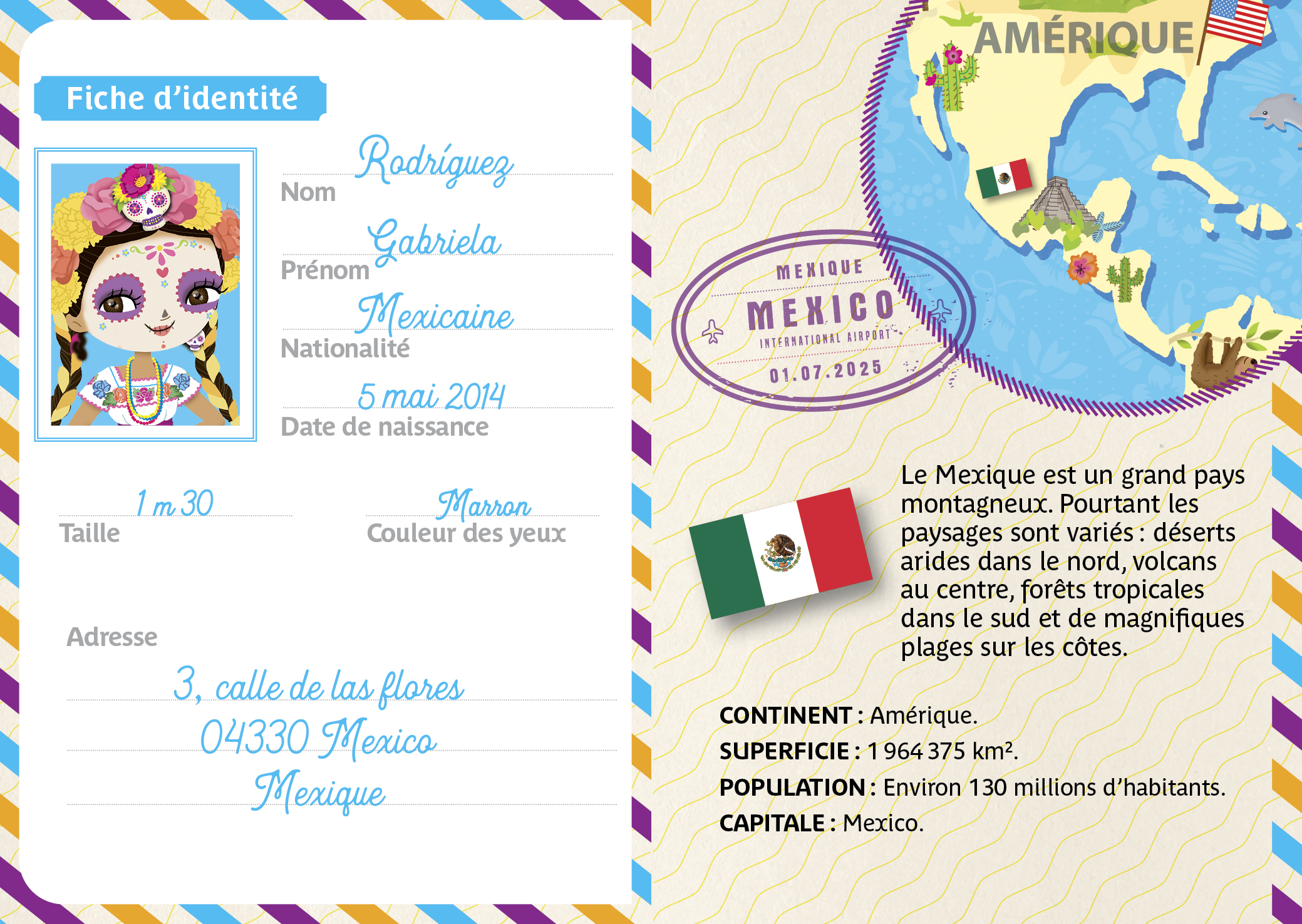 Pour compléter l’activité, l’enfant découvre le Mexique grâce à un livret-passeport contenant des informations documentaires, des jeux et des coloriages.