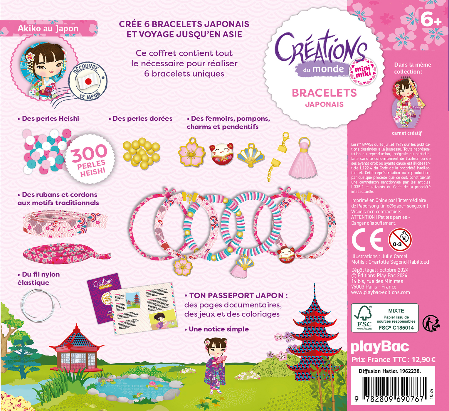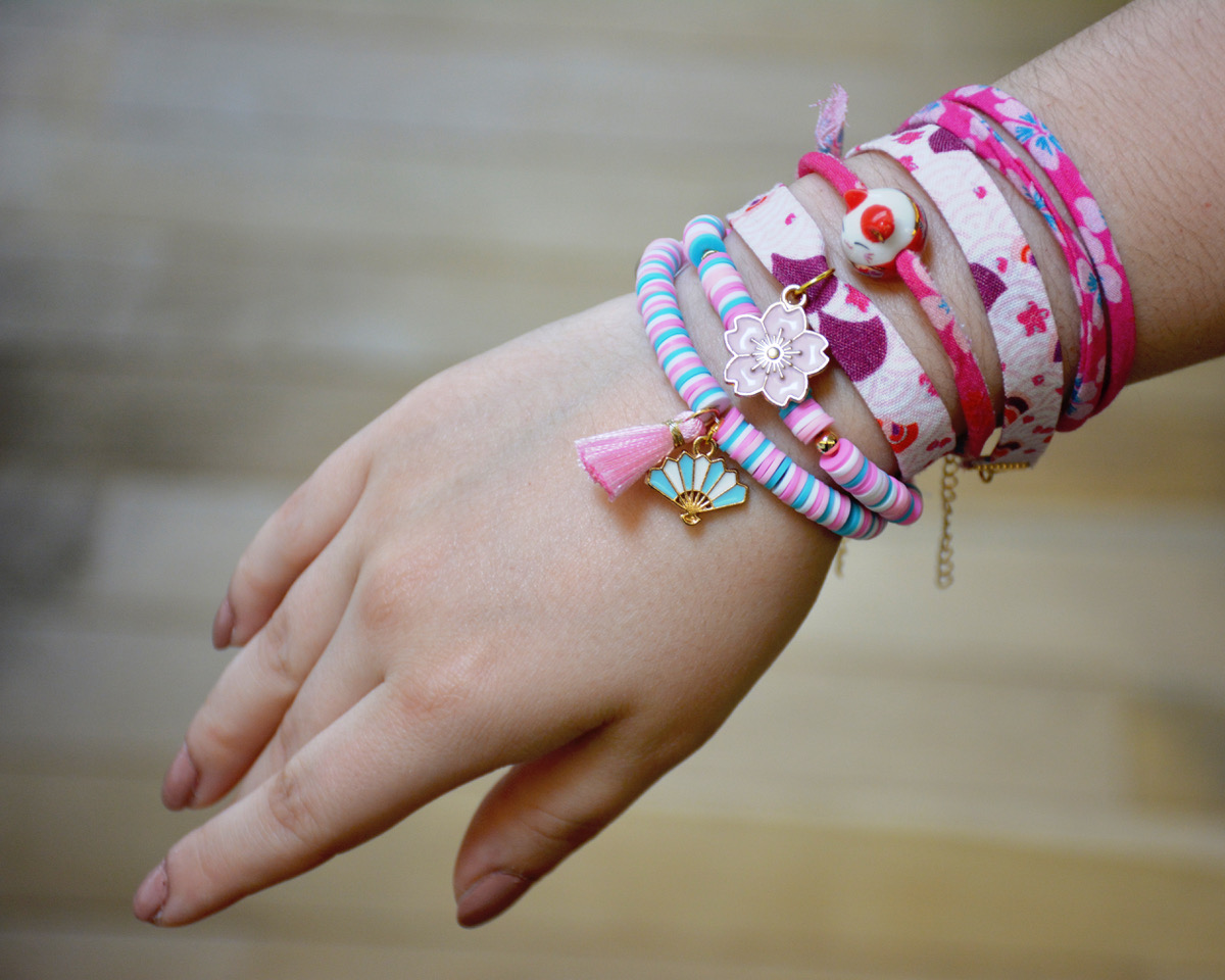 Dans ce coffret, une notice en pas à pas et tout le matériel nécessaire pour créer six bracelets uniques aux couleurs des cerisiers en fleurs, pour voyager jusqu’au Japon.