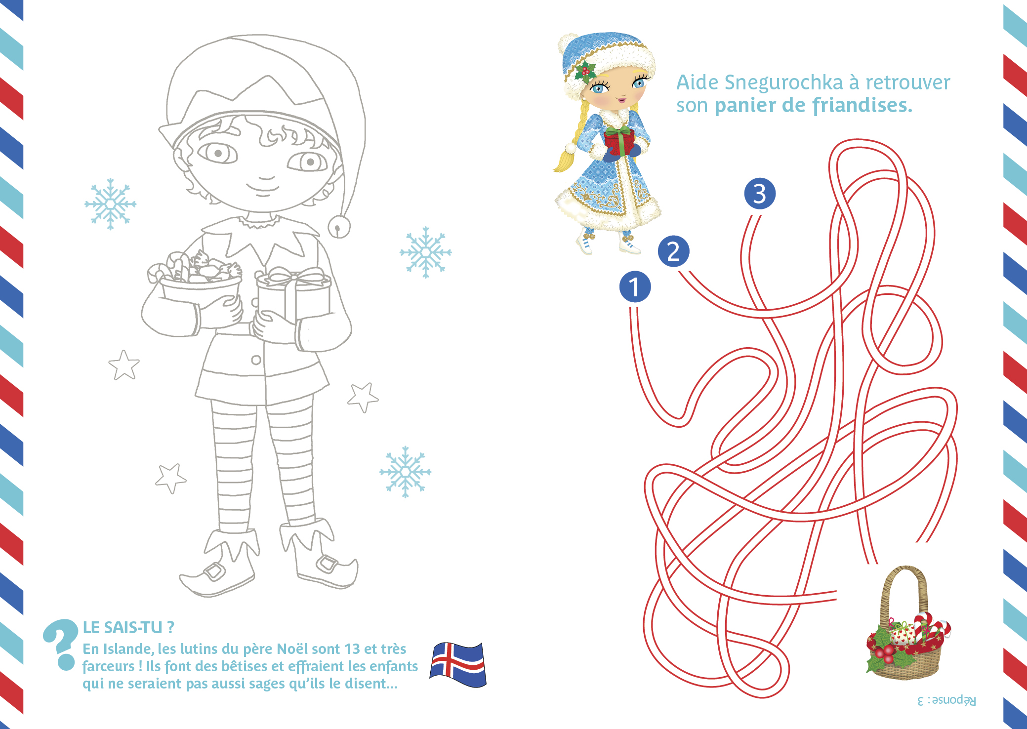 Pour compléter l’activité, l’enfant découvre les célébrations de Noël dans le monde grâce à un livret-passeport contenant des informations documentaires, des jeux et des coloriages.
