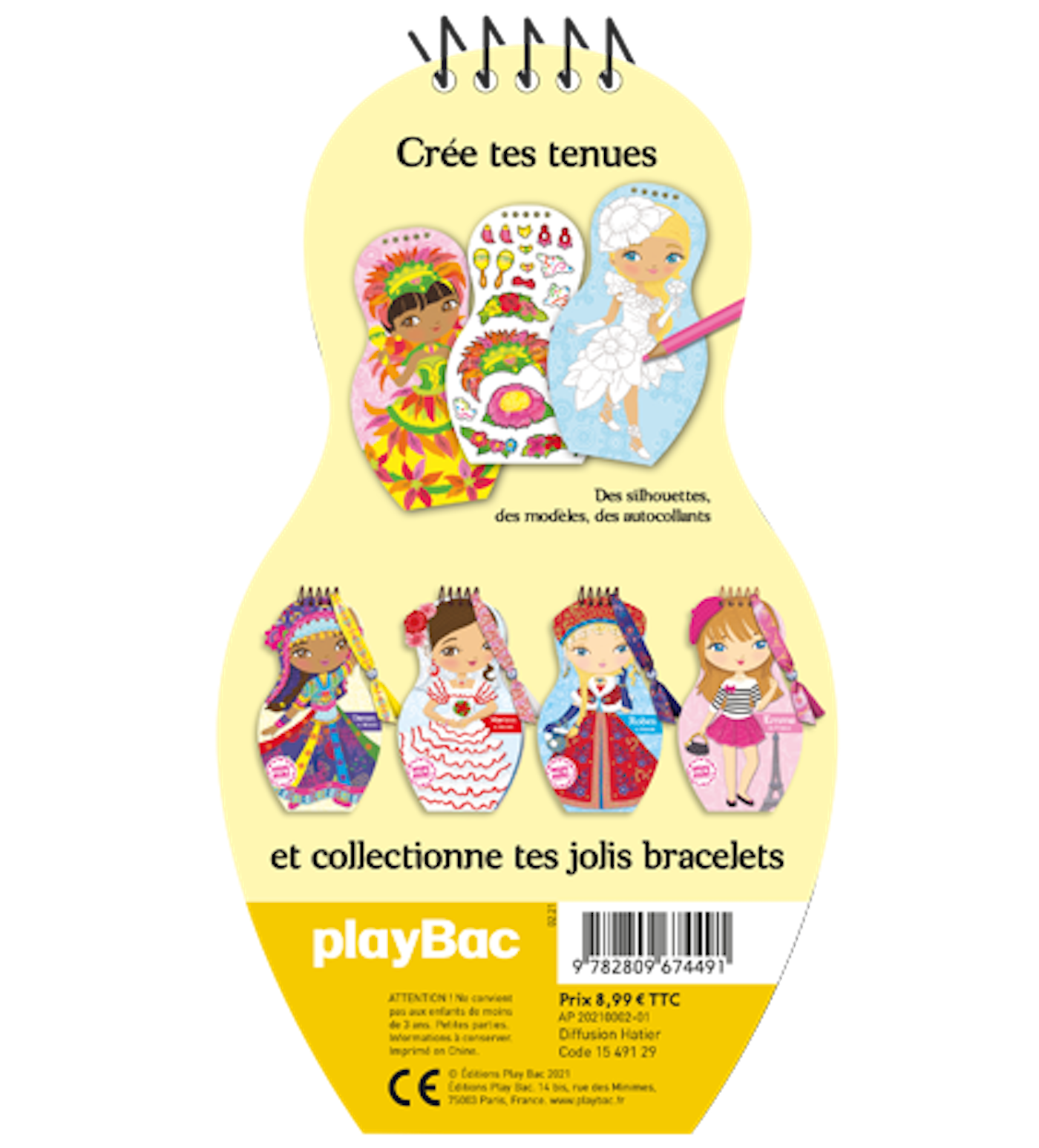 Dans ce carnet créatif, crée tes jolies poupées grâce à de nombreuses silhouettes à colorier, des modèles et 4 planches de stickers.