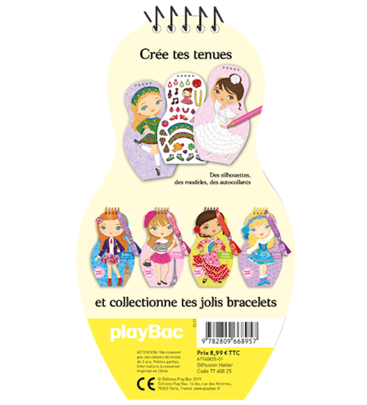 Dans ce carnet créatif, crée tes jolies poupées grâce à de nombreuses silhouettes à colorier, des modèles et 4 planches de stickers.