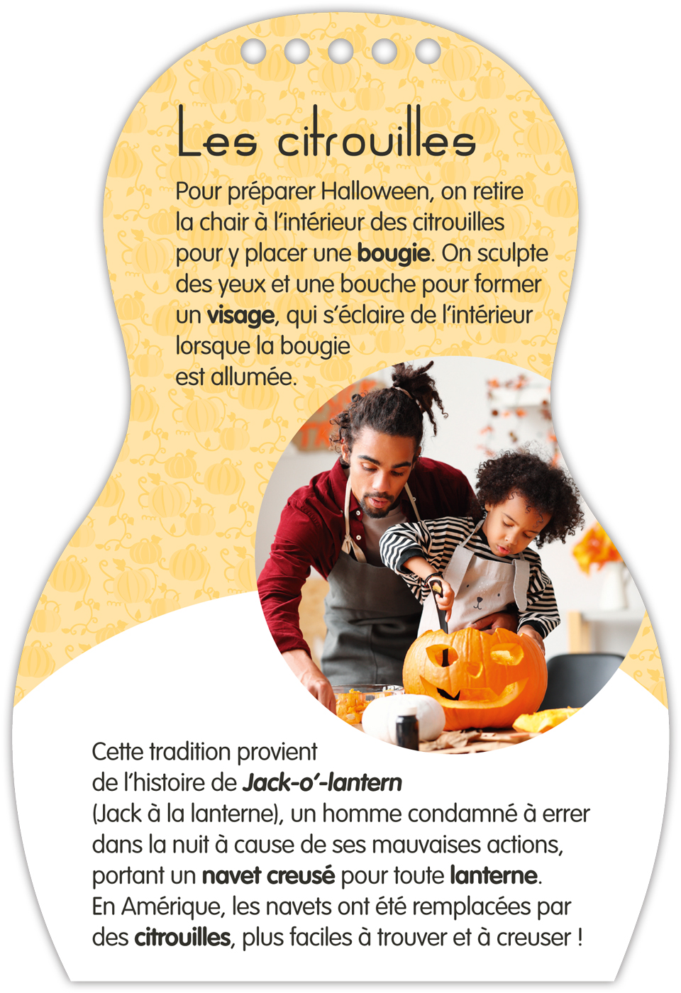 Et en plus, des infos documentaires sur Halloween : l'histoire de la fête dans le monde, les sorcières, les citrouilles, les animaux, les bonbons et les sorts…