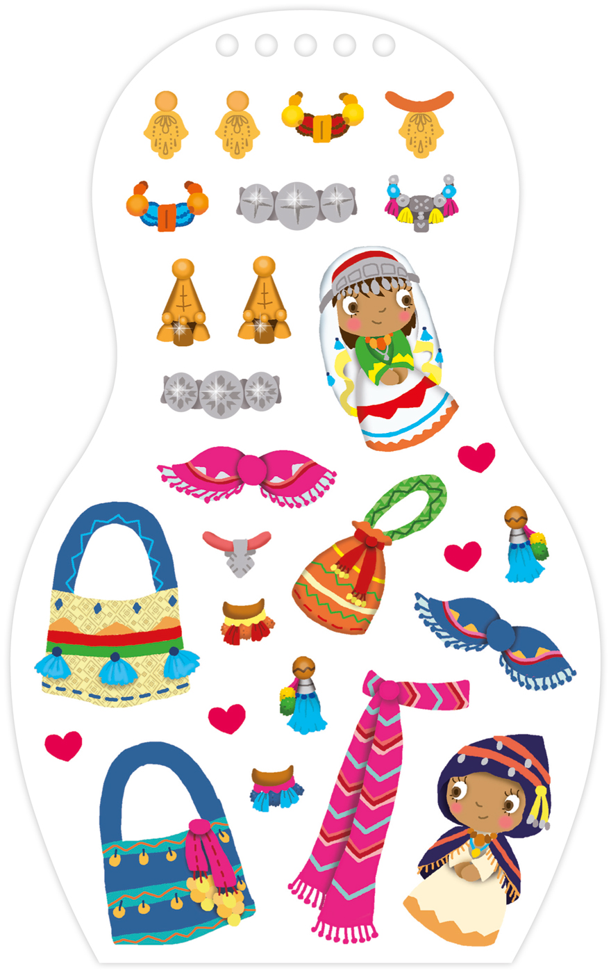 Dans ce carnet créatif, crée tes jolies poupées grâce à de nombreuses silhouettes à colorier, des modèles et 4 planches de stickers.