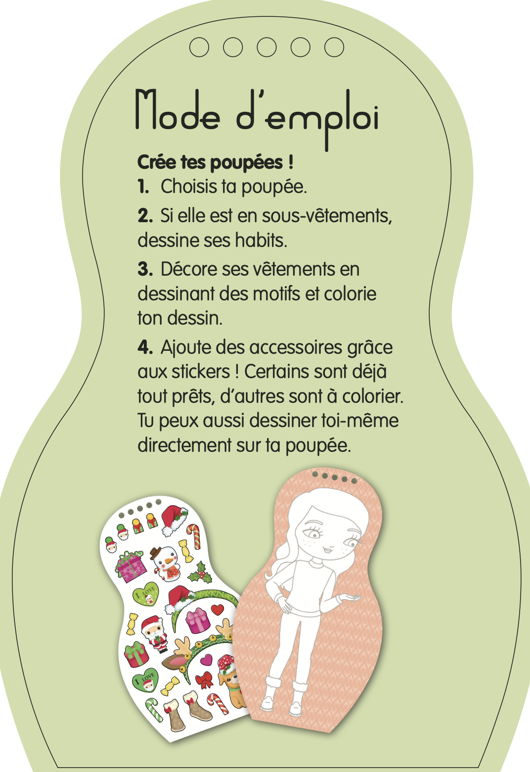 Dans ce carnet créatif, crée tes jolies poupées grâce à de nombreuses silhouettes à colorier, des modèles et 4 planches de stickers. Tu découvriras aussi des infos documentaires sur les traditions et les tenues de Noël dans le monde : en Russie, au Royaume-Uni, en Roumanie, en France et en Norvège.