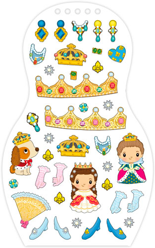 Contenu : 7 pages découvertes, 3 pages de stickers, 1 page de stickers à colorier, 10 pages de coloriages, 58 poupées à décorer, 12 poupées à habiller.