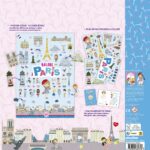 Avec cette pochette, l’enfant découvre la ville de Paris et ses lieux emblématiques grâce à de jolis stickers à coller aux bons emplacements sur un grand poster (format 55 x 80 cm).