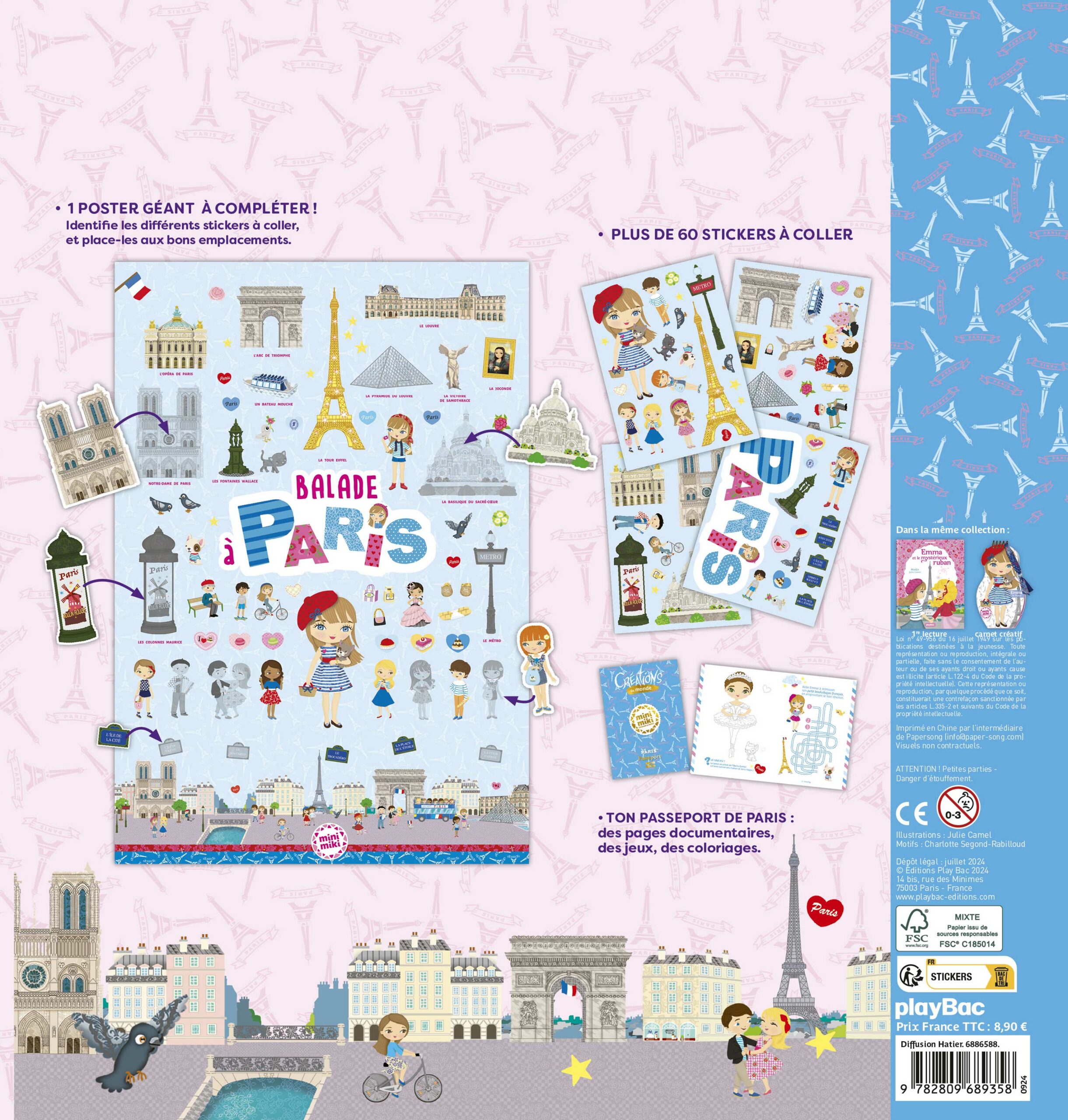 Avec cette pochette, l’enfant découvre la ville de Paris et ses lieux emblématiques grâce à de jolis stickers à coller aux bons emplacements sur un grand poster (format 55 x 80 cm).