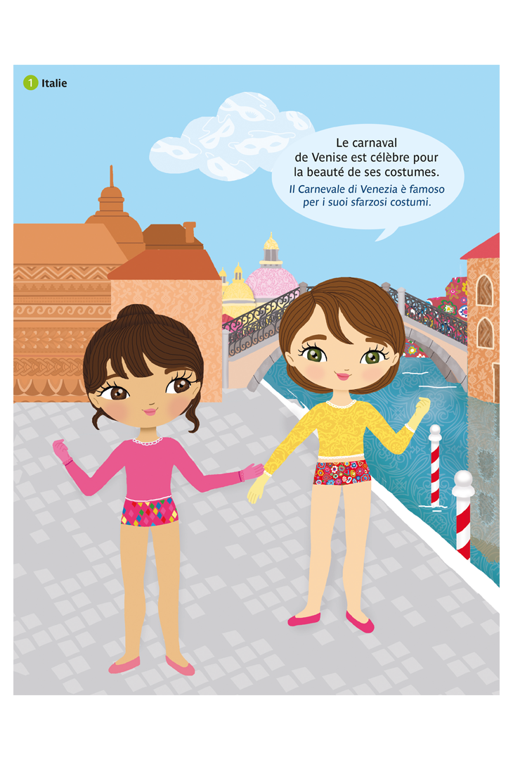 À toi de créer les plus belles tenues pour le carnaval de Venise en Italie, la fête des Cerisiers au Japon ou un Noël en Russie…