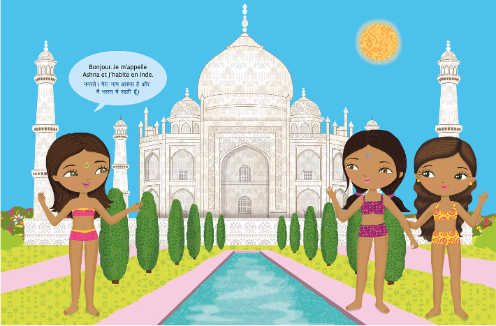 Direction l'Inde avec Ashna. Avec 300 stickers et 12 scènes, l'enfant imagine et crée les plus belles tenues pour visiter le Taj Mahal ou une plantation de thé, faire une balade sur les canaux du Kerala et visiter la foire aux chameaux de Pushkar.
