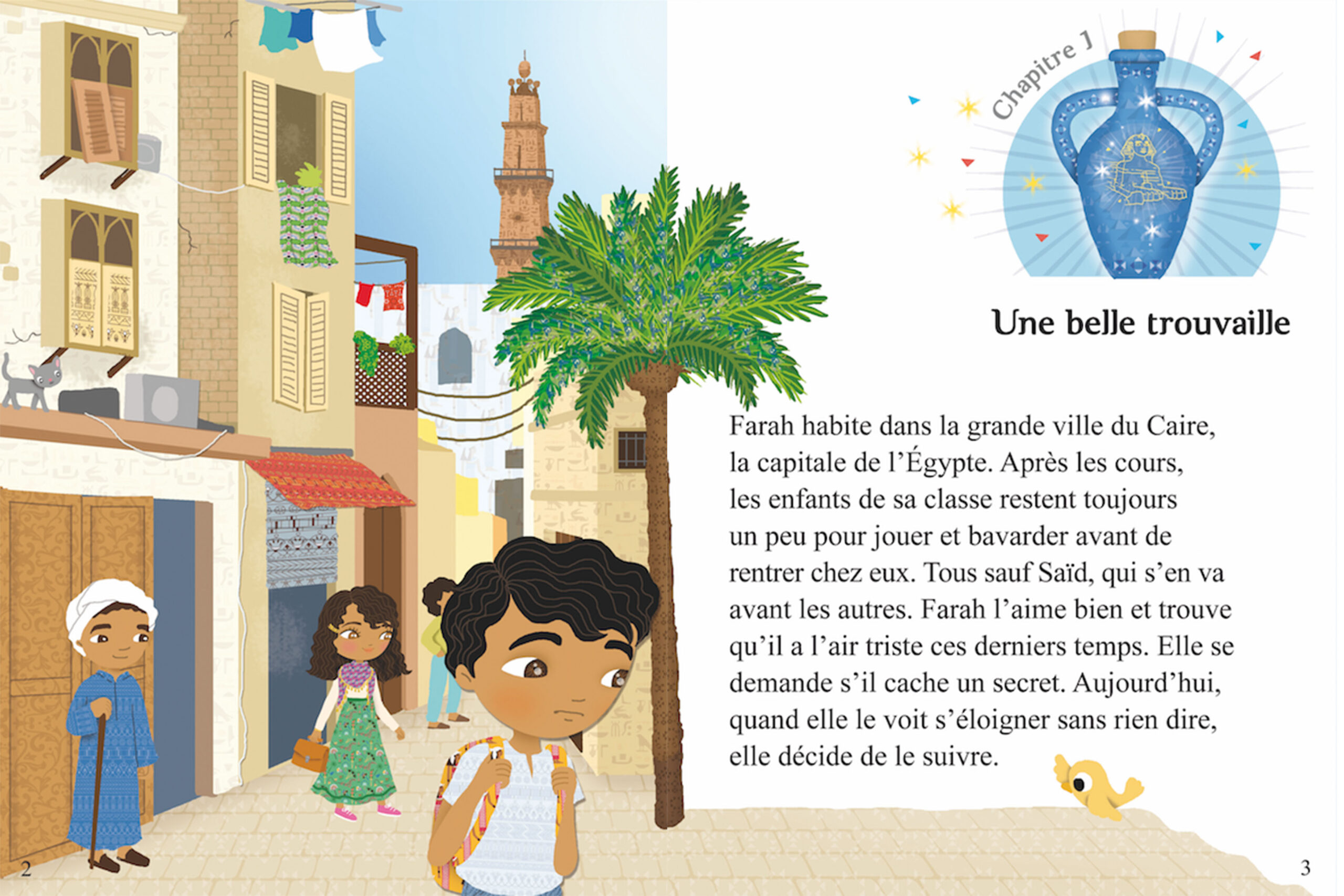 Découvre le monde avec Minimiki et ses histoires magiques ! Direction l’Égypte ! Farah habite en Égypte. Quand elle découvre que son ami Saïd a a des problèmes, elle décide de l’aider. Sa générosité l’emmène dans une aventure magique… jusqu’au pied du sphinx de Gizeh ! À lire seul ou accompagné.