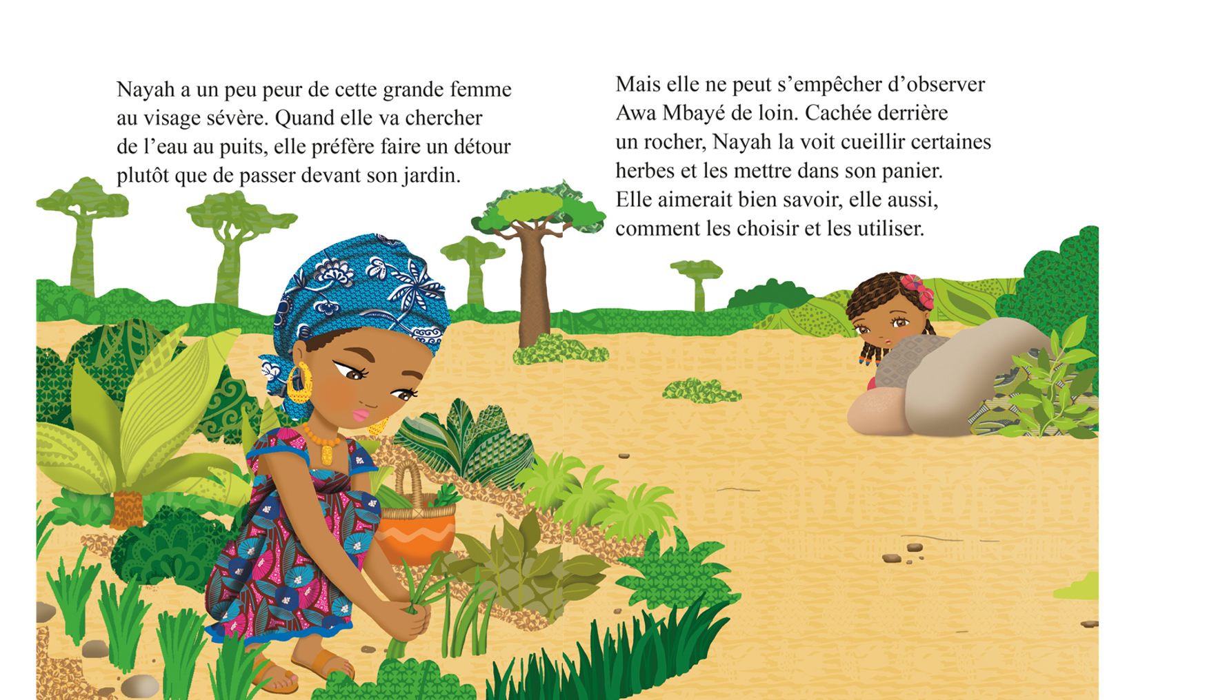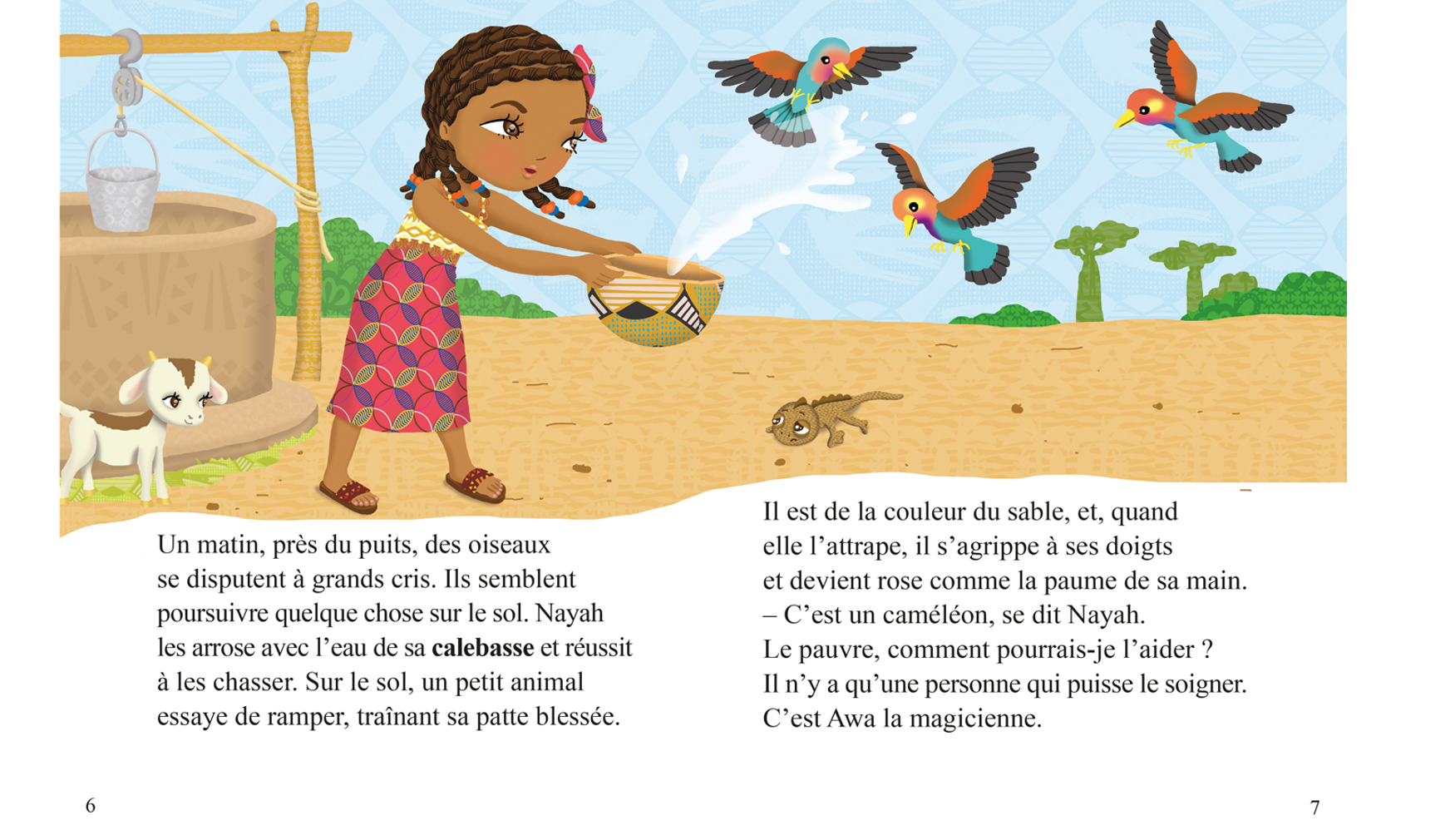 Nayah a un peu peur d'Awa Mbayé, la guérisseuse de son village au Sénégal. Pourtant, le jour où elle recueille un caméléon blessé, elle est obligée de surmonter sa peur pour le sauver. Elle ignore alors qu'il va devenir un ami… merveilleux !