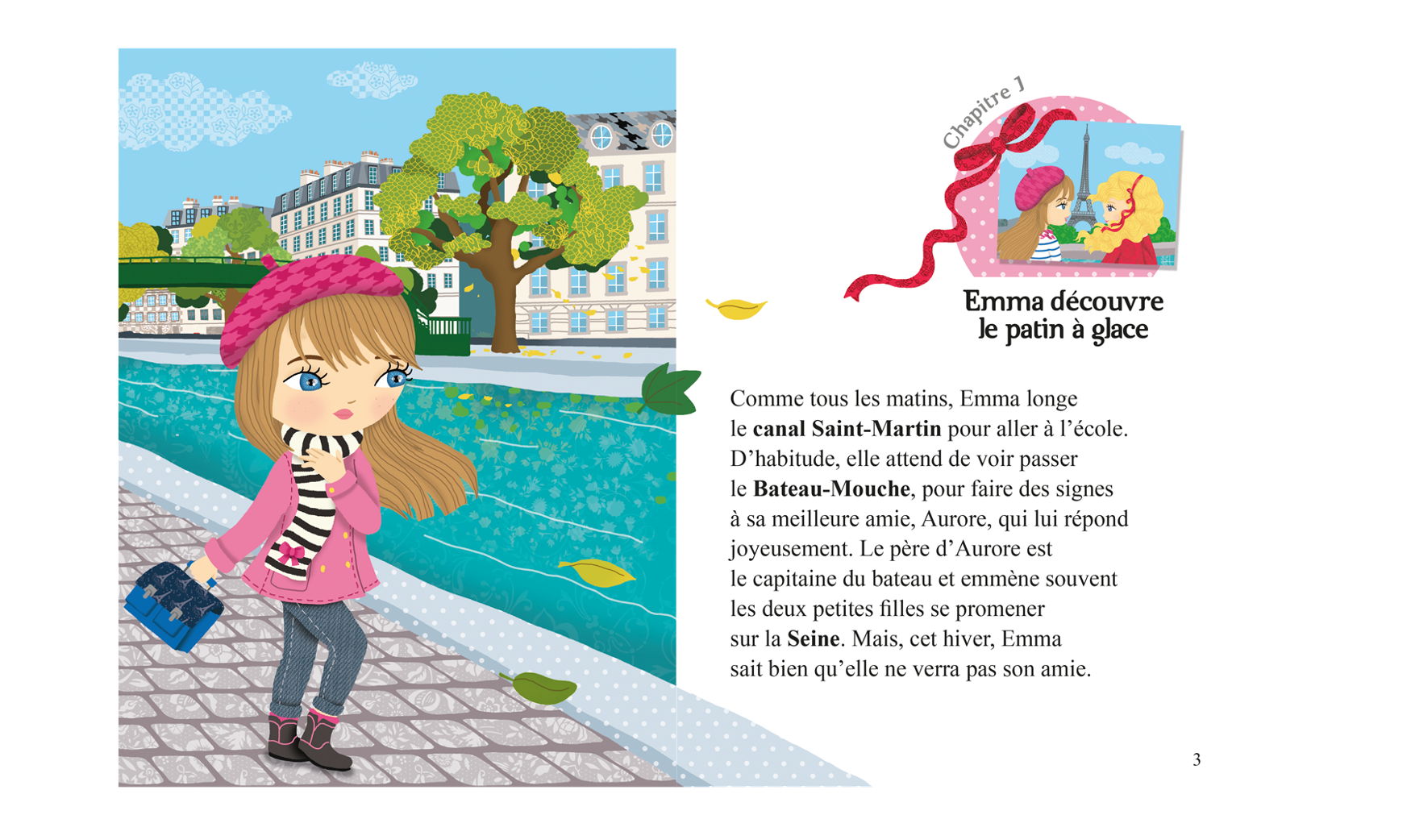 Découvre le monde avec Minimiki et ses histoires magiques ! Direction Paris ! Dans la classe d’Emma, à Paris, tout le monde est fou de joie à l’idée d’apprendre à faire du patin à glace. Mais quand Emma découvre qu’elle n’y arrive pas, elle boude et s’isole. Heureusement le cadeau qu’elle reçoit de sa meilleure amie va révéler d’étonnants pouvoirs… À lire seul ou accompagné.