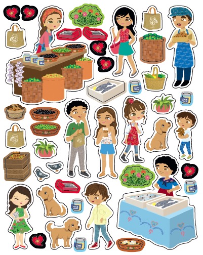 - Les animaux typiques (mouettes, morues et poissons, lézards, chiens, chats…)