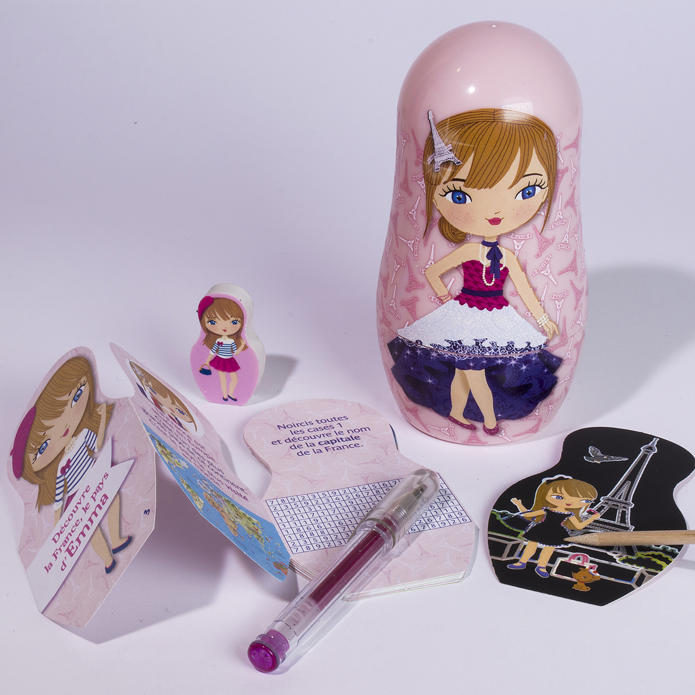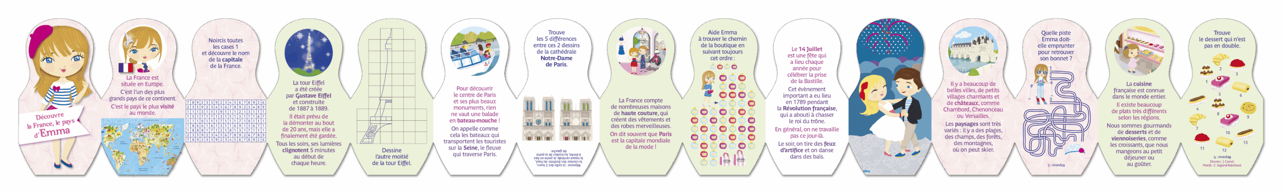 Découvre l’univers de Paris avec Emma ! Ta jolie boîte collector contient plein de surprises pour colorier, gratter, s’amuser et se documenter sur la belle ville de Paris. Et à l’intérieur : un cadeau adorable ! Complète ta collection Minimiki avec les autres titres : Léna en Russie, Kate au Royaume-Uni, Akiko au Japon, Mohea à Tahiti, Elena en Grèce et Emma à l’Opéra.