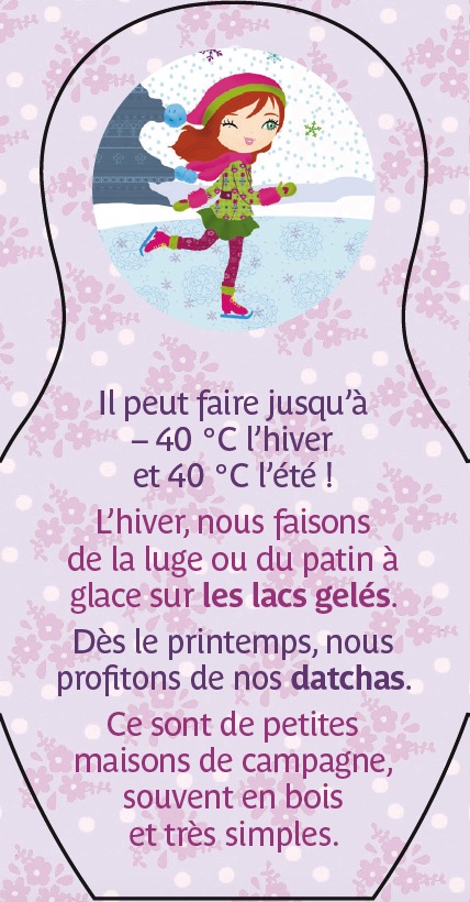 Découvre l’univers de la Russie avec Léna ! Ta jolie boîte collector contient plein de surprises pour colorier, gratter, s’amuser et se documenter sur la Russie. Et à l’intérieur : un cadeau adorable ! Complète ta collection Minimiki avec les autres titres : Elena en Grèce, Kate au Royaume-Uni, Akiko au Japon, Mohea à Tahiti, Emma en France et Emma à l’Opéra.
