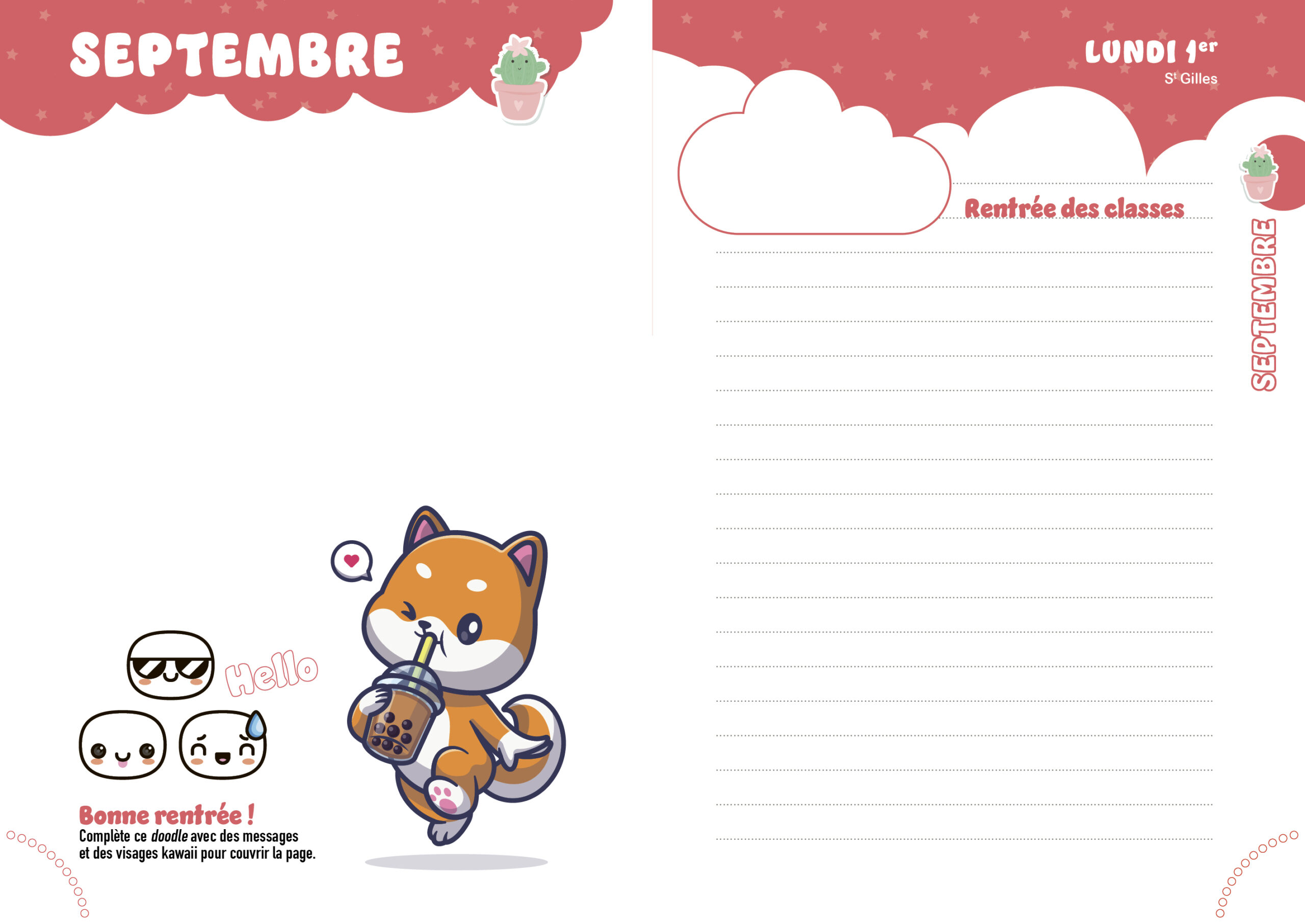 Personnalise ton agenda Kawaii grâce à :