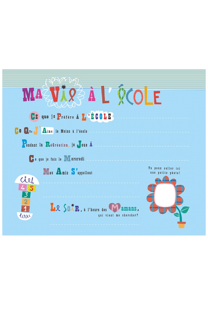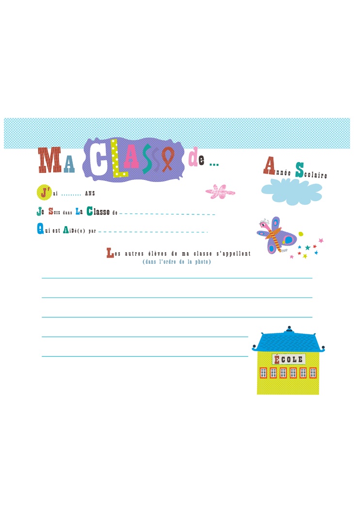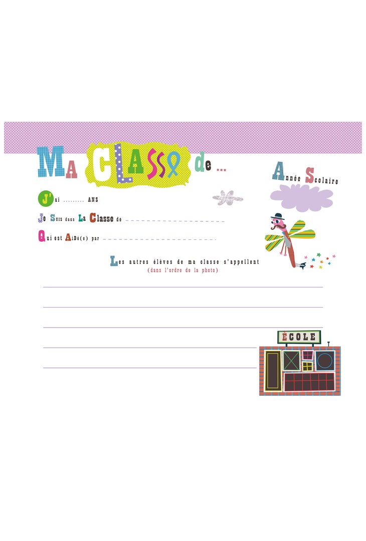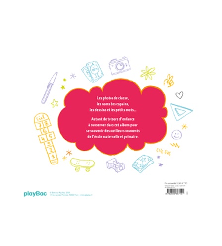 Dans cet album aux grandes pages, colle tes photos de classe et tes photos d’identité, note le nom de tes copains, de tes profs et inscris tes meilleurs souvenirs (dessins, amis, maîtresse…)
