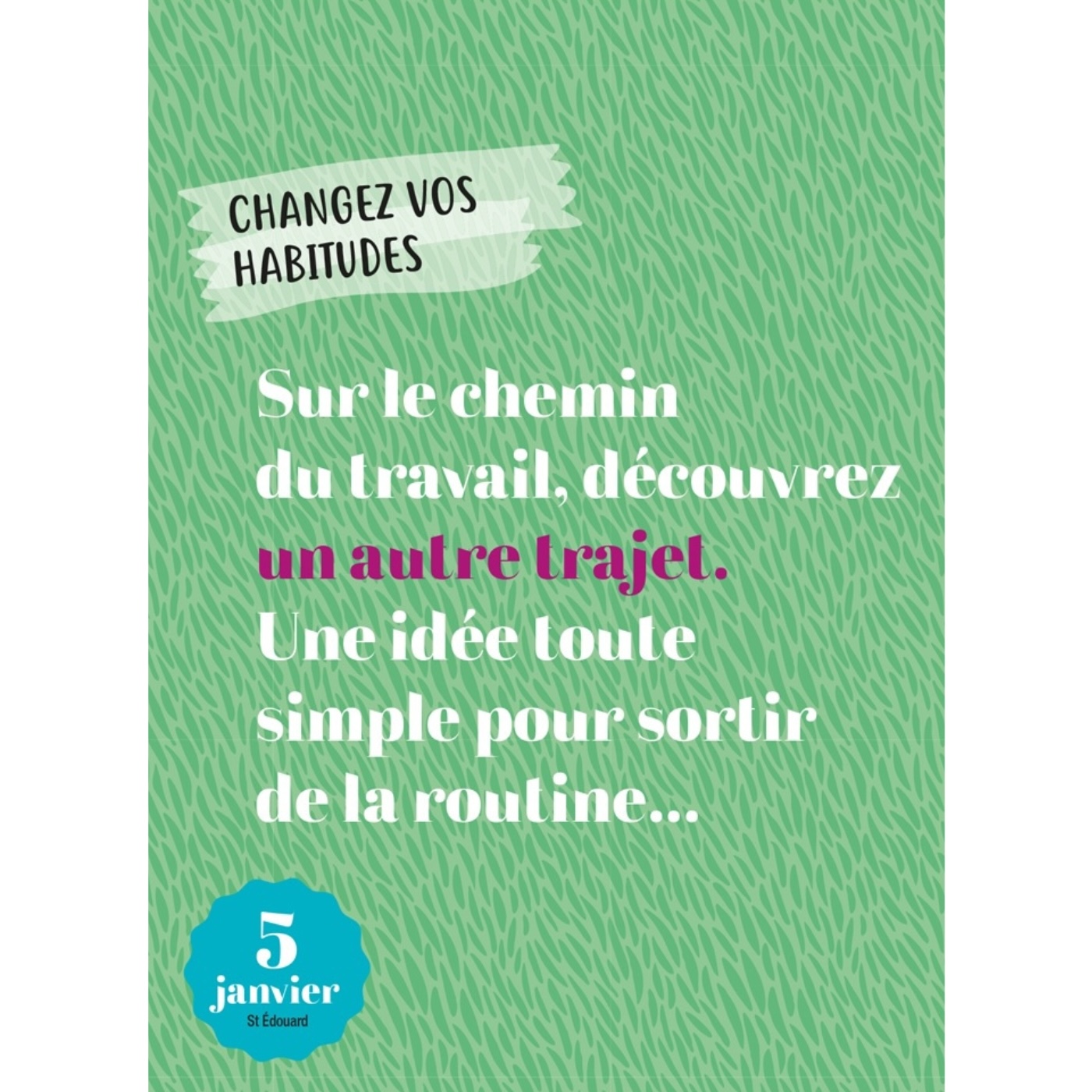Adoptez la positive attitude et pimentez jour après jour votre quotidien en suivant les 365 idées proposées par ce calendrier.