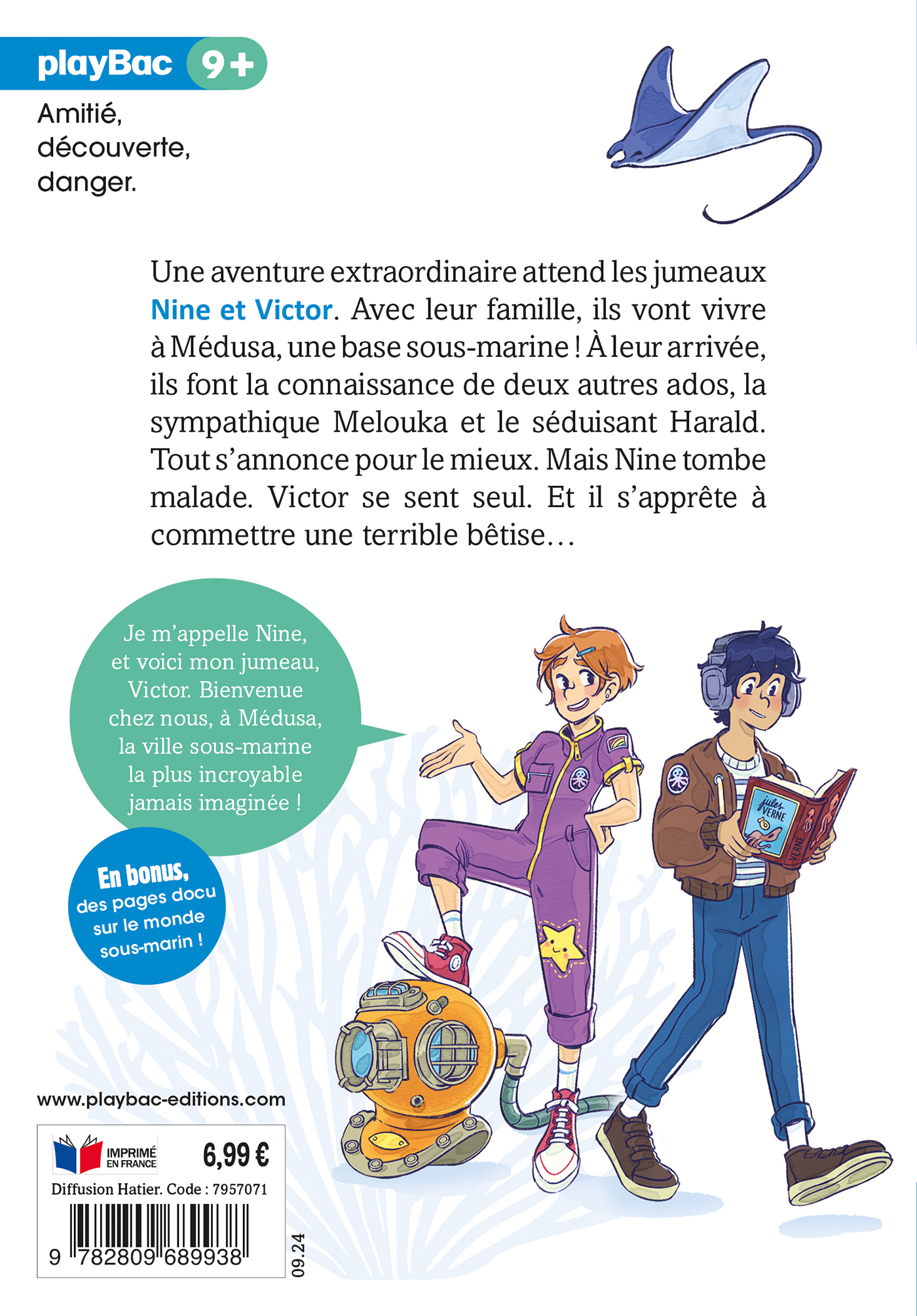Une aventure extraordinaire attend les jumeaux Nine et Victor. Avec leur famille, ils vont vivre à Médusa, une base sous-marine ! À leur arrivée, ils font la connaissance de deux autres ados, la sympathique Melouka et le séduisant Harald. Tout s'annonce pour le mieux. Mais Nine tombe malade. Victor se sent seul. Et il s'apprête à commettre une terrible bêtise…