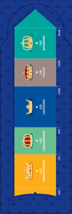 De Clovis à Louis-Philippe en passant par Louis XIV, Aliénor d'Aquitaine et Marie-Antoinette, découvre les rois et reines qui ont marqué l'histoire de France.