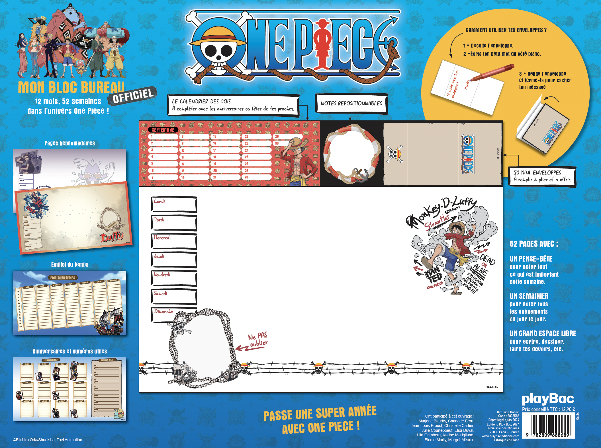 Ce grand bloc bureau officiel One Piece contient :