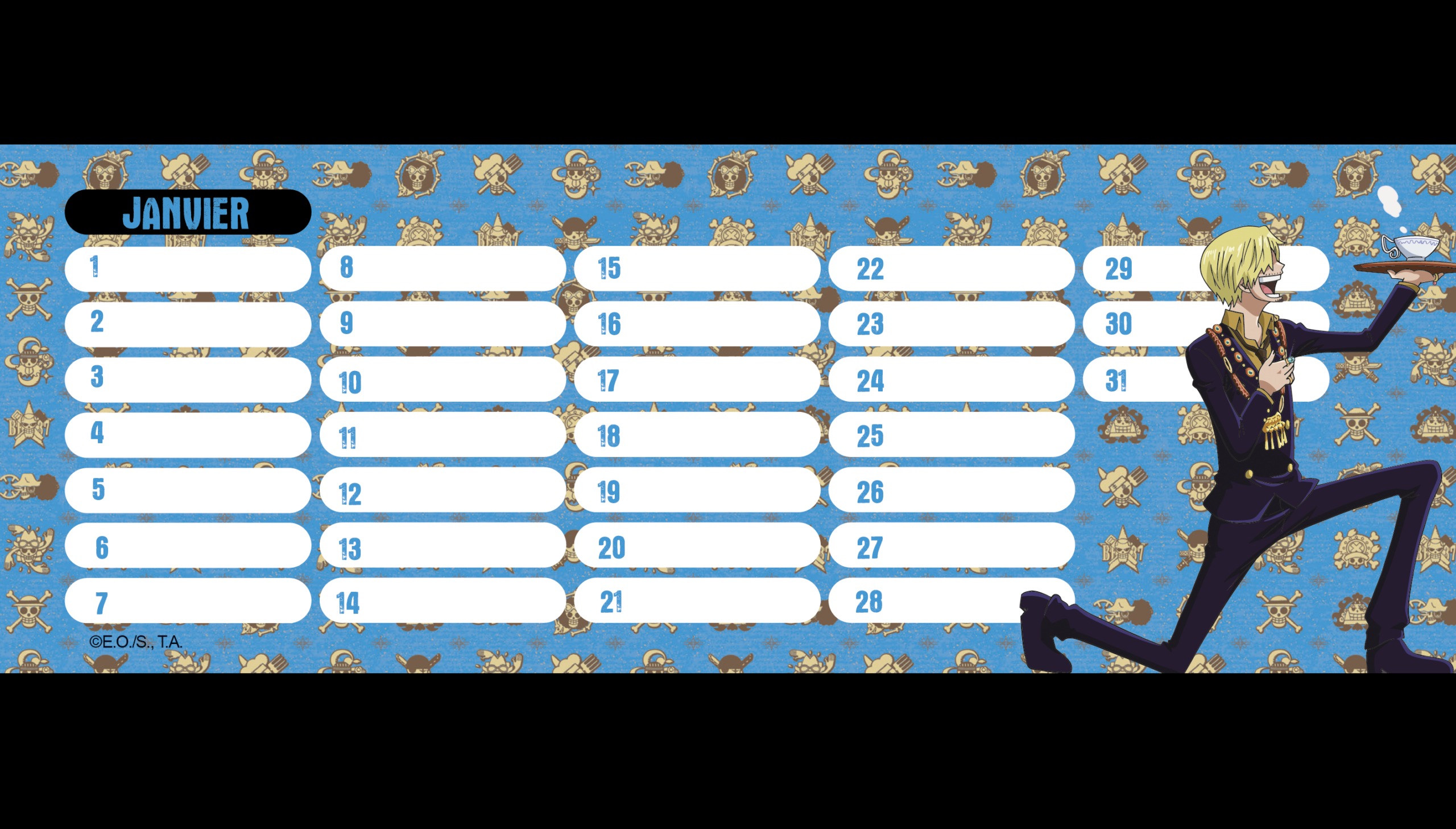 Le tout sur un grand format (28 x 38 ccm) à utiliser comme sous-mains pour passer une super année avec One Piece !